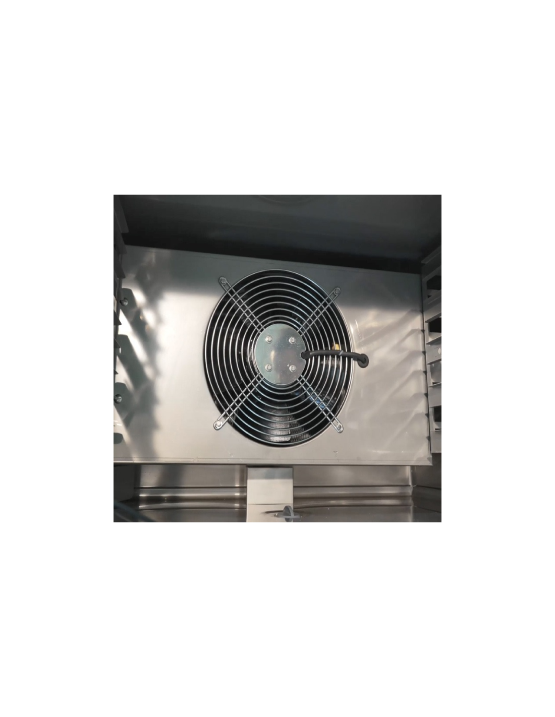 Abatidor de temperatura con capacidad para 7 bandejas GN 1/1 o 7 de 60x40 cm. Construido en acero inoxidable AISI-304, resistente, eficaz y de última generación. Cuenta con control digital y sonda de pincho desmontable. Refrigeración por tiro forzado, gestión eficiente de ciclos y alarmas HACCP.