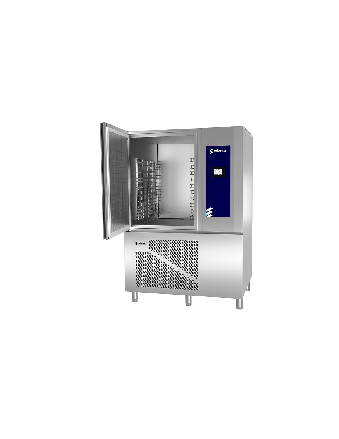 Abatidor de temperatura con capacidad para 10 bandejas GN1/1 o 60x40 cm, enfría o congela alimentos desde +90°C / +3°C y desde +90°C hasta -18°C. Incluye sonda calefactada para asegurar un control preciso de la temperatura y poder retirar fácilmente en ciclos de congelación. Cumple con normativas HACCP, garantizando calidad y seguridad. Medidas: 790 x 800...