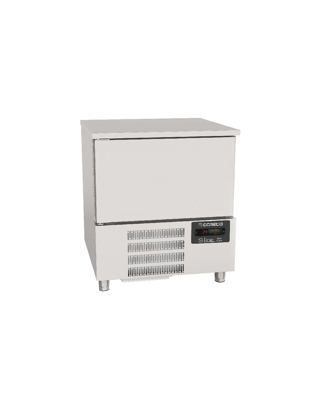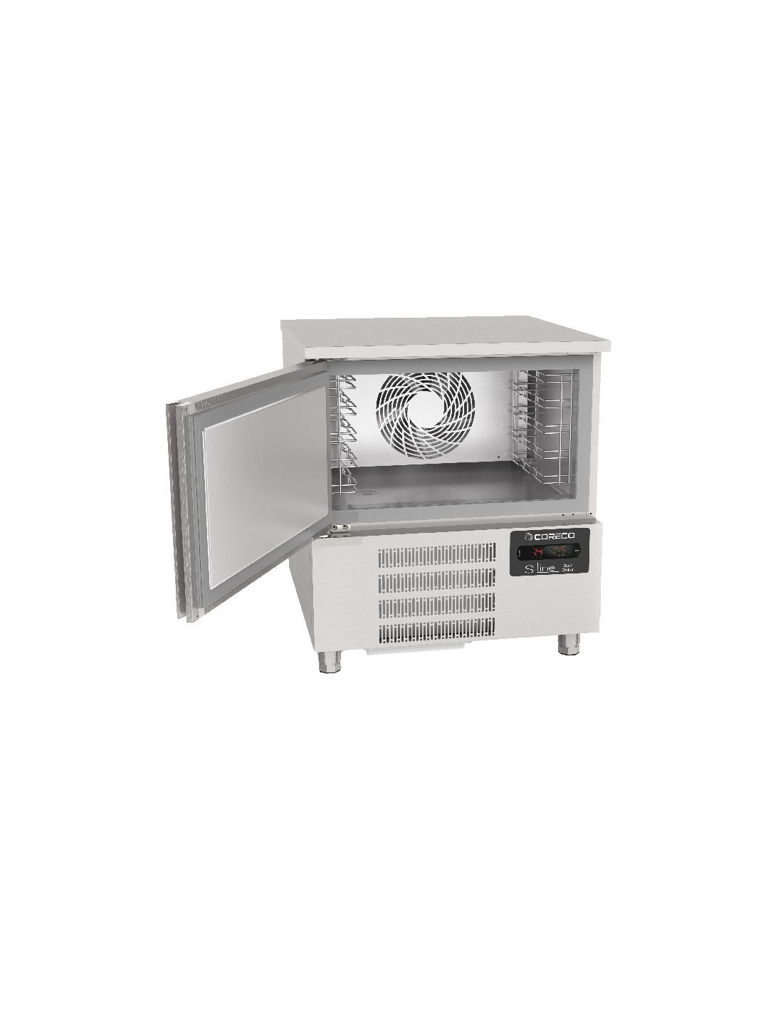 Abatidor y Congelador de temperatura. Controlador de fácil uso y mayor precisión en temperatura. Puerta con calefacción y burletes reemplazables. Conexión USB, recetas HACCP, ciclos personalizados y gestión de abatimiento/congelación. Sonda calefactada y capacidad para 99 programas personalizados. Capacidad 3 GN 1/1.