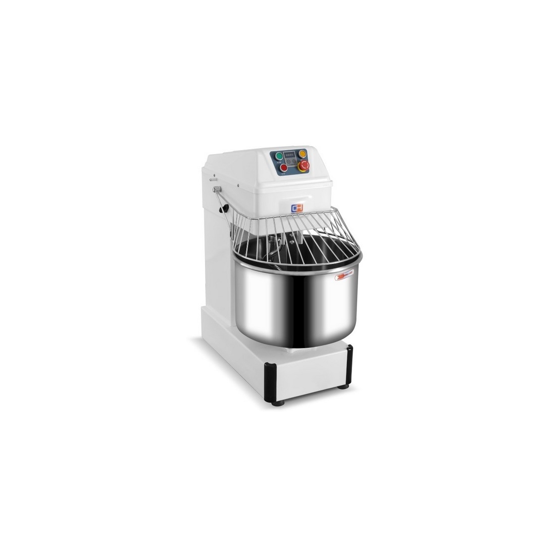 - Caldero, gancho espiral, divisor de la masa, rejilla de seguridad y demás elementos que entran en contacto con la masa fabricados enteramente en acero inoxidable.