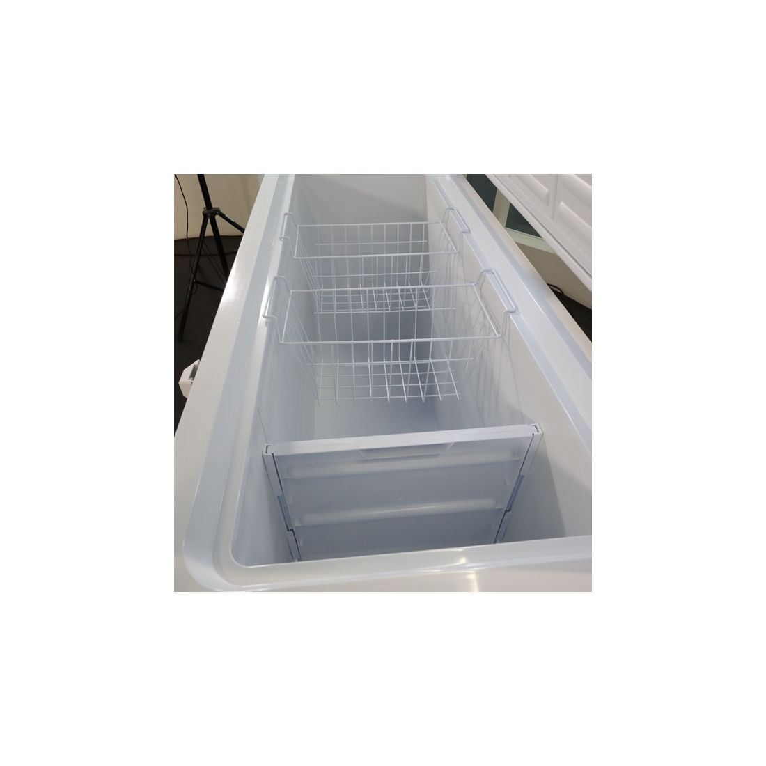 Congelador horizontal con capacidad de 402 litros. Cuenta con iluminación interior Led. Incluye cerradura con llave y termostato analógico para la regulación de temperatura. Dotado de serie con 2 cestas. Además, destaca por su alta eficiencia energética.