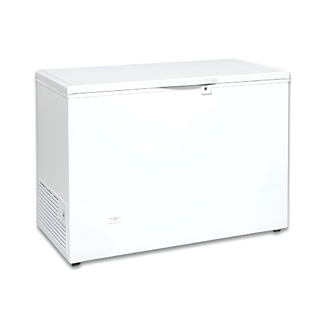 Congelador horizontal con tapa abatible y capacidad de 210 litros. Rango de temperatura: -17º / -25ºC. Dotado de cierre con llave y desagüe interior.