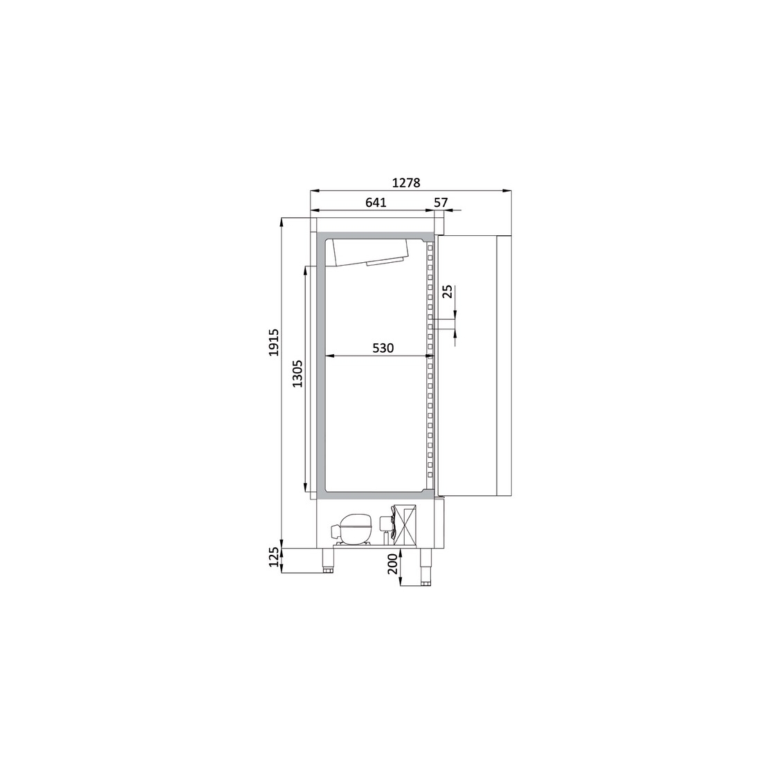 Frigorífico expositor 2 puertas abatibles de cristal, con capacidad de hasta 800 litros. Equipado con 5 estantes regulables en altura. Refrigeración ventilada, descarche automático, evaporador con recubrimiento anticorrosión. Capacidad: 816 latas de 33cl.