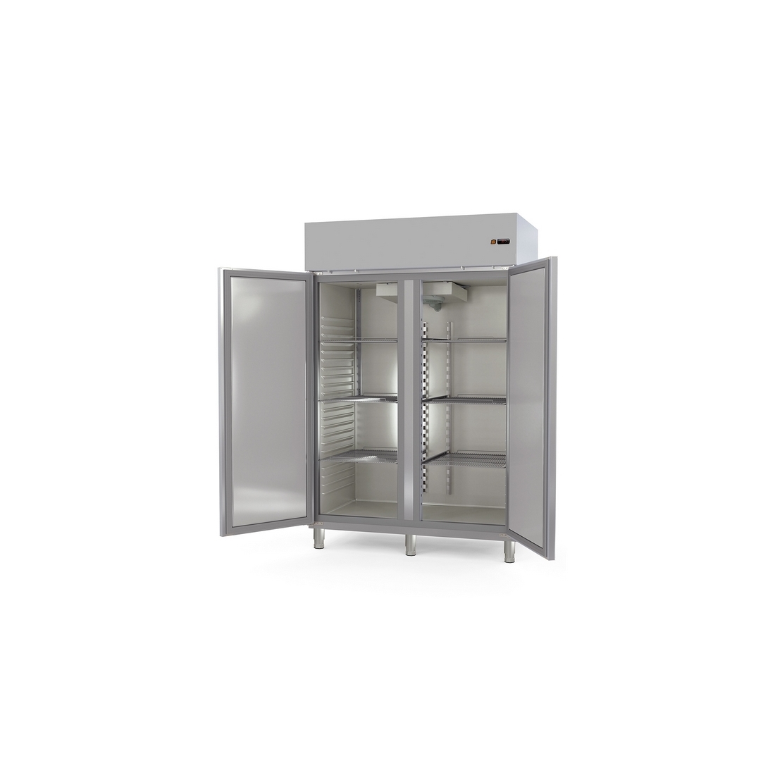 Descubre nuestro armario frigorífico con capacidad de 1404 litros y un rango de temperatura ajustable de -2°C a +8°C. Eficiente y potente, opera a 230 V con refrigerante R-290. Ofrece control digital de temperatura, estantes ajustables, sistema de tiro forzado y desescarches automáticos. Destaca por su clasificación energética D y su clase climática 5 (40ºC al 40% humedad).
