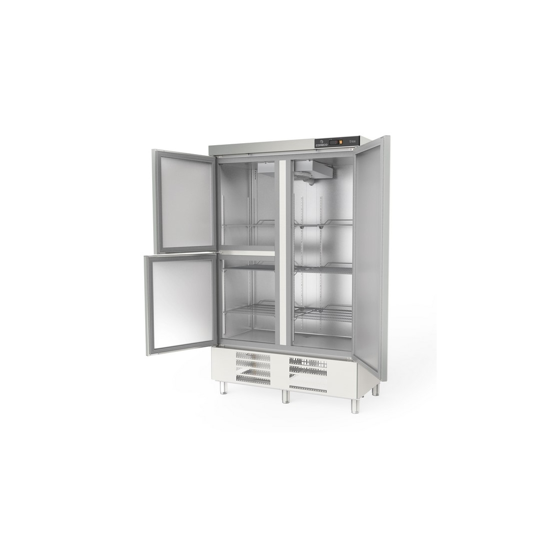 - Esta nevera industrial de 4 puertas cuneta con estantes internos (6+3), hechos de alambre recubierto de acero plastificado, son ajustables en altura para una organización personalizada.