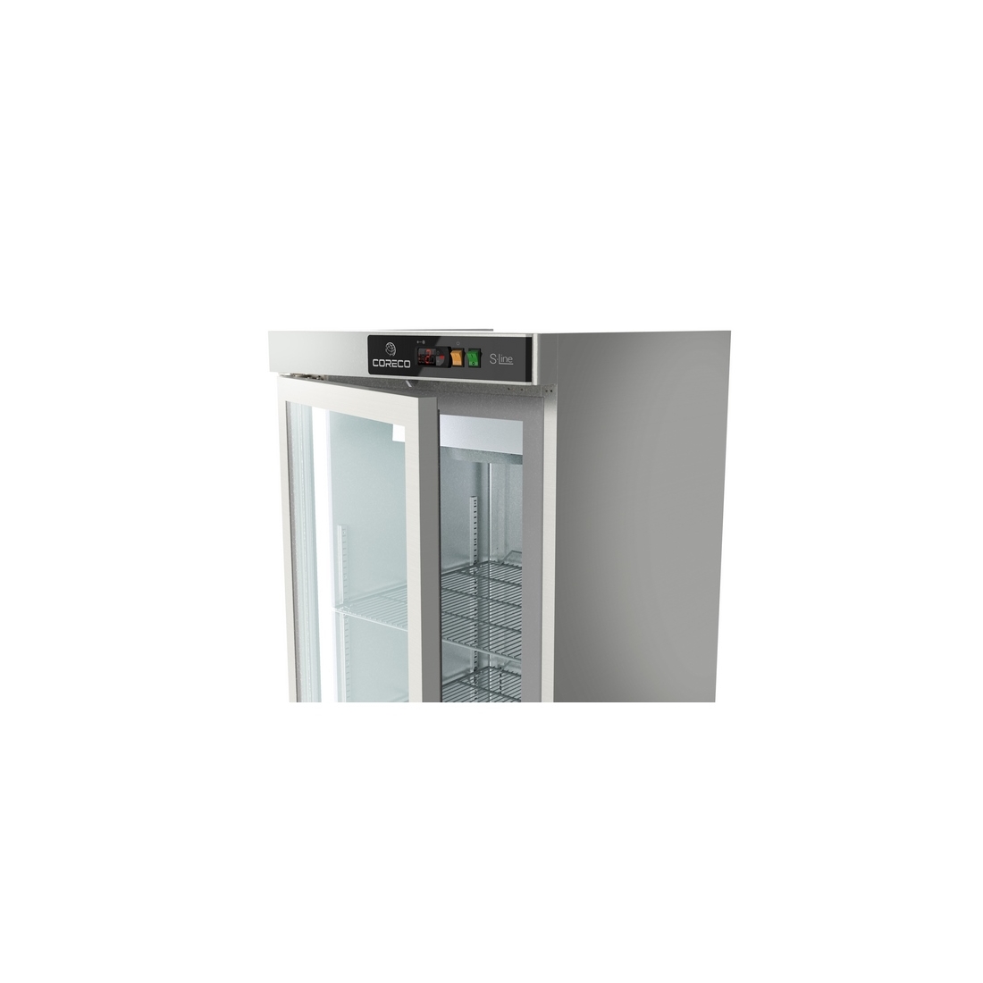 Armario Refrigerado 125cm 2 Puertas CSRV-125-S de Coreco, resalta gracias a sus medidas compactas 1250 x 700 x 2040 mm, su gran capacidad de 964 litros y puertas de cristal para una mejor organización, eficiencia y visibilidad. Presenta un rango de temperatura que va desde -2ºC hasta +8ºC, una eficiencia energética clasificada como D, una potencia de 416 vatios y cuenta con 2 puertas.