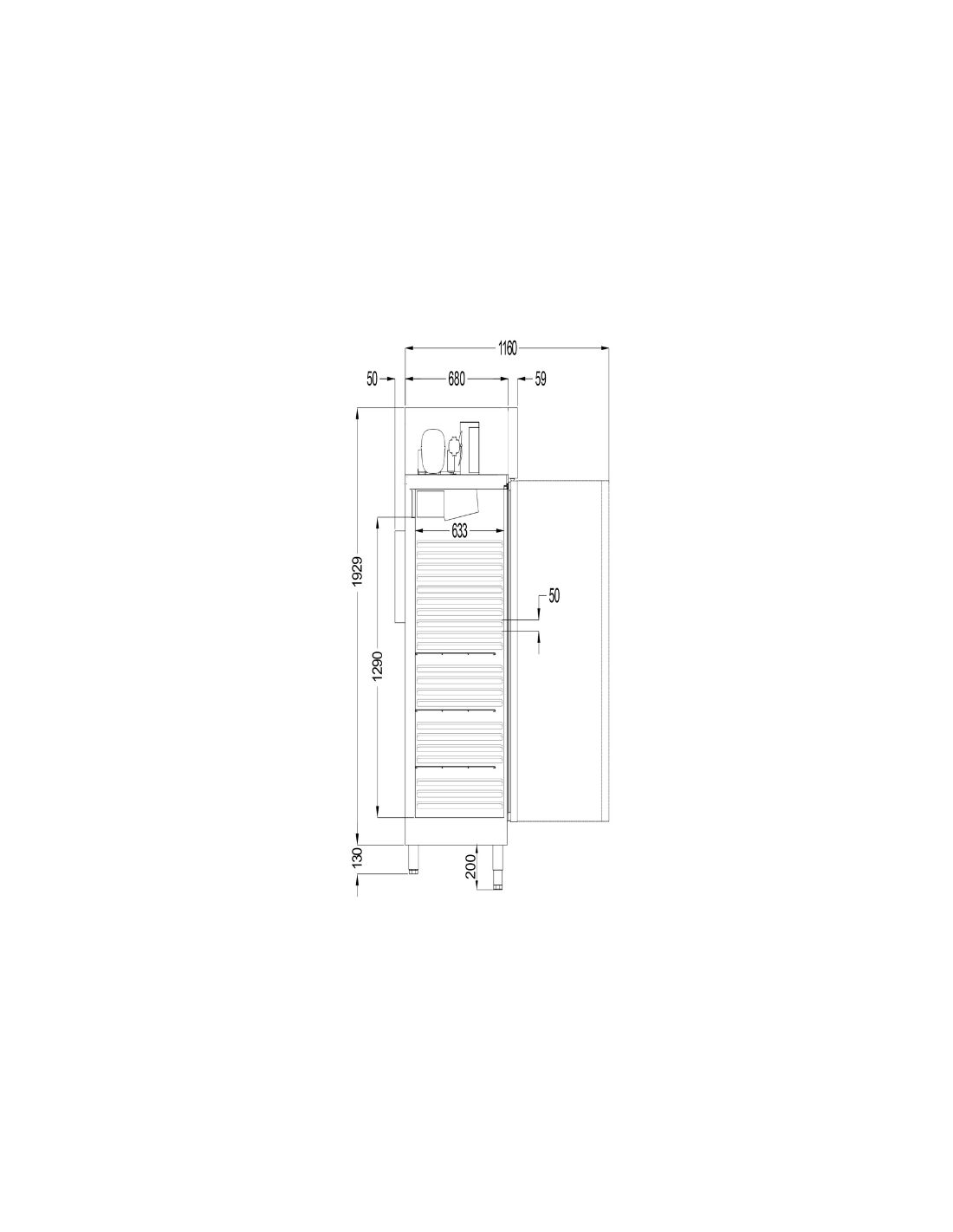 • Dimensiones exteriores: 430 x 770 x 2040 mm.