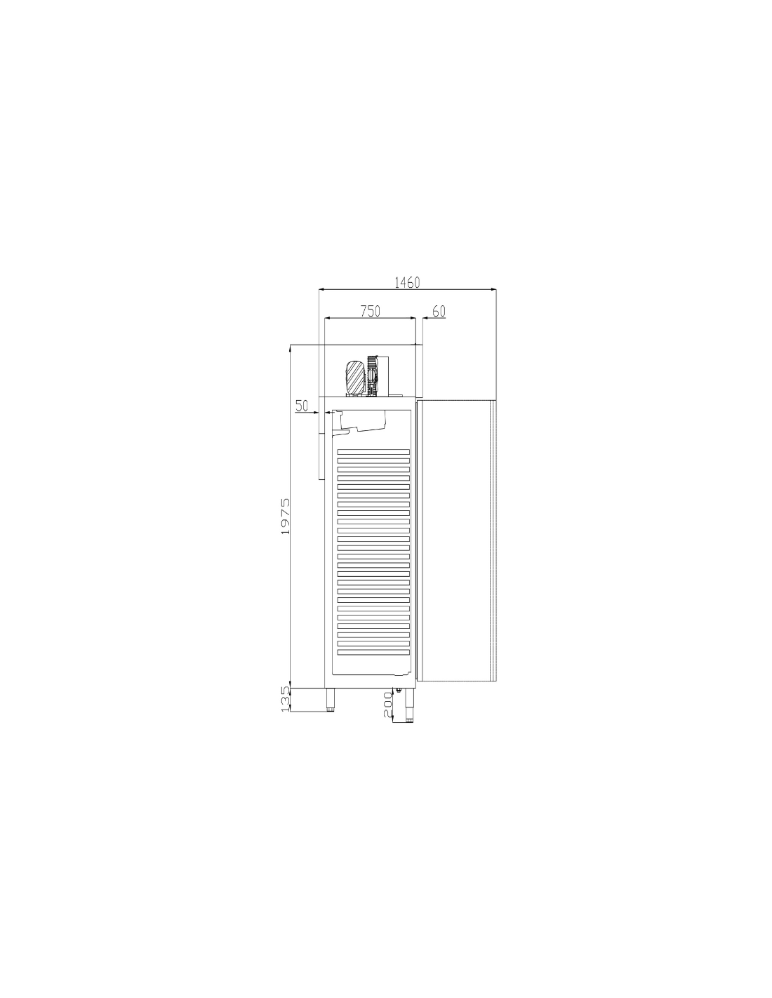 • Patas inox regulables de 135 a 200 mm.