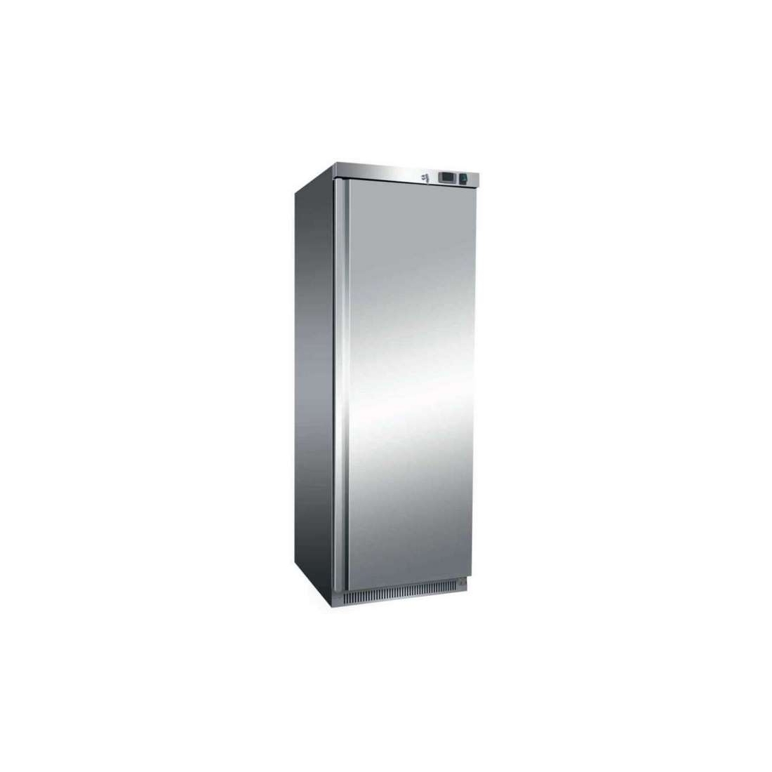 Armario refrigerado de una puerta con una capacidad de 400 litros. Está fabricado exteriormente en acero inoxidable. El sistema de refrigeración es estático con ventilador de apoyo y sistema de condensación estático. Los desescarches son automático. Control electrónico digital de la temperatura y del desescarche DIXELL.