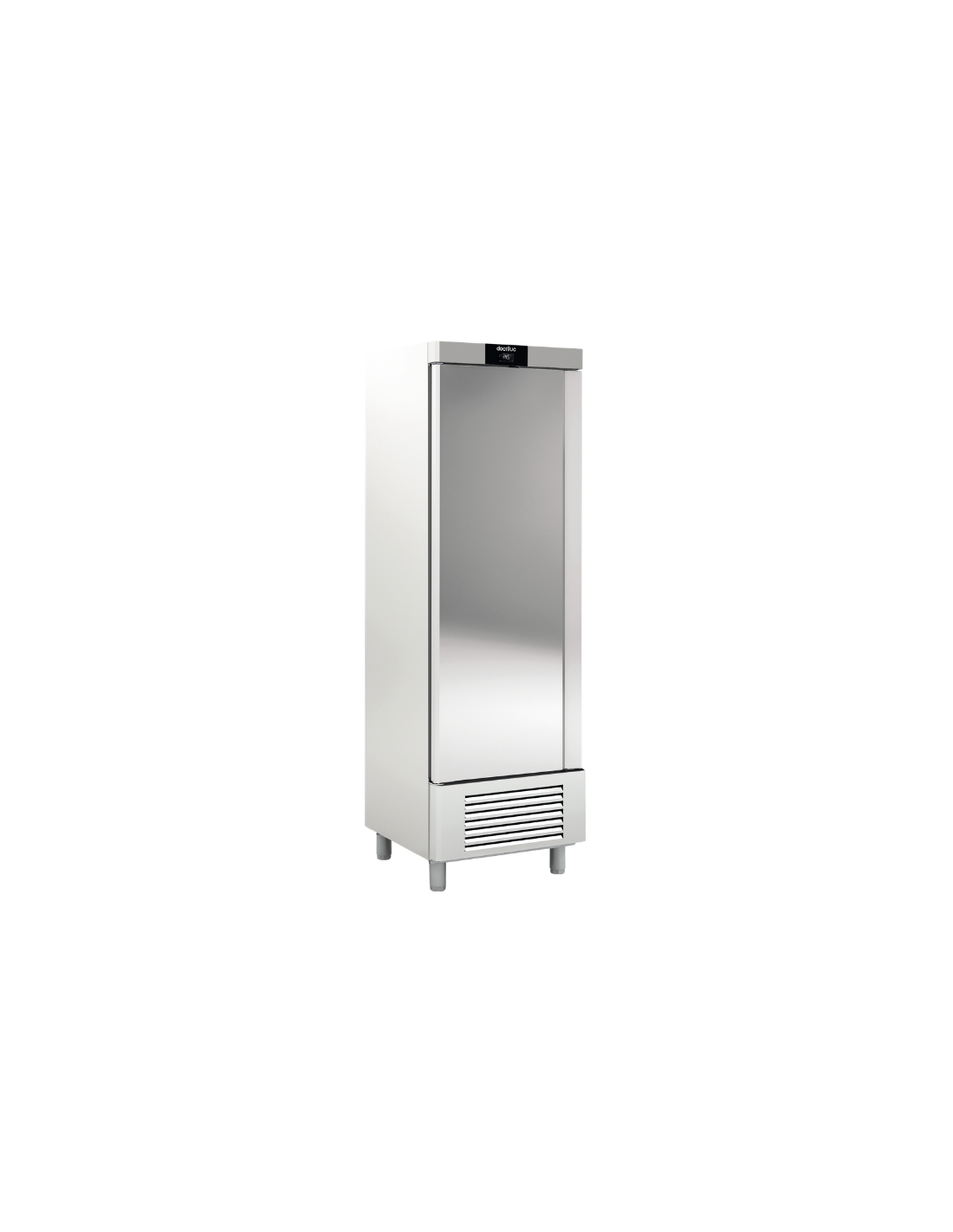 Armario refrigerado de 1 puerta con 500 litros de capacidad, diseñado en acero inoxidable. Medidas 660x 735 x 2160 mm. Temperatura ajustable -2°C a +8°C y un consumo eléctrico eficiente 272W. Cuenta con estantes ajustables, sistema de enfriamiento mediante tiro forzado, control digital de temperatura y desescarches automáticos. Ideal para entornos de hasta 40°C.