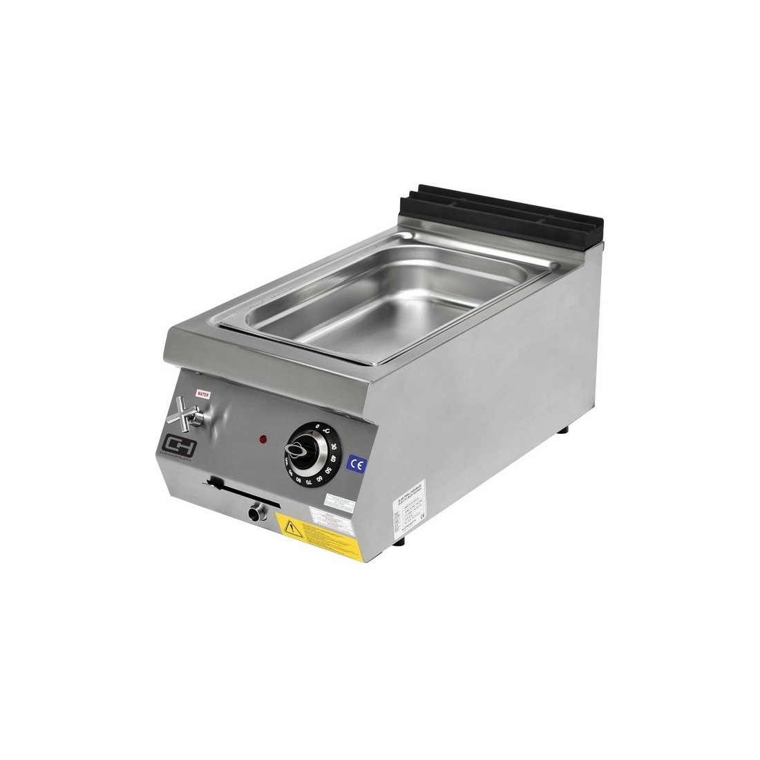 Baño maría eléctrico fondo 700mm, con 1 cubeta GN1/1 - 150 mm. Se puede utilizar de manera versátil, ya que permite tener los distintos componentes de un plato por separado, por ejemplo, carne, patatas y salsa.