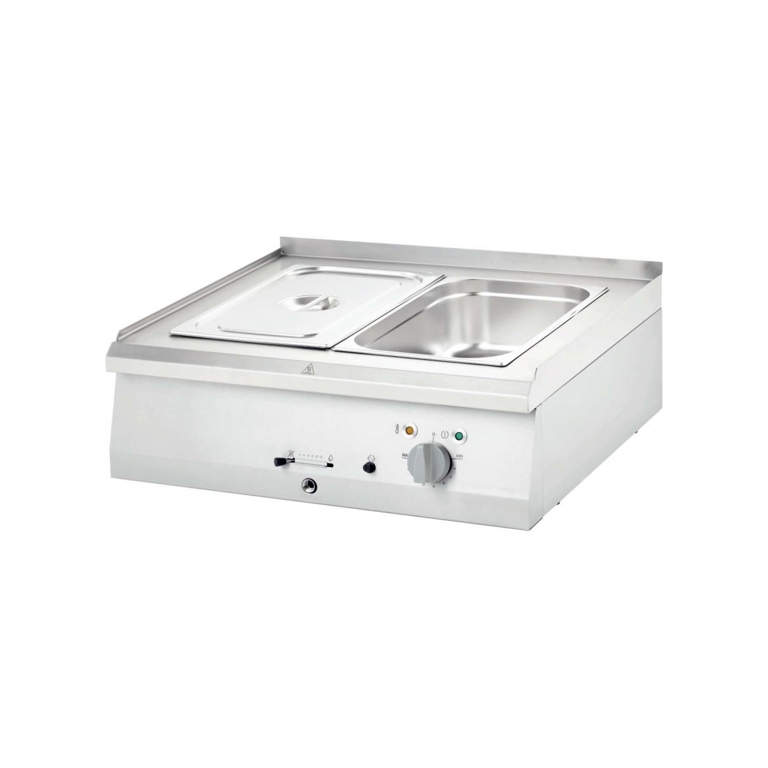 - Es un aparato eléctrico que calienta un baño de agua en el que se introducen las bandejas GN con los alimentos. El agua se emplea pues como trasmisor del calor y se mantiene por debajo del punto de ebullición a una temperatura máxima constante de 95°C, de manera que los alimentos conserven su textura y sabor.