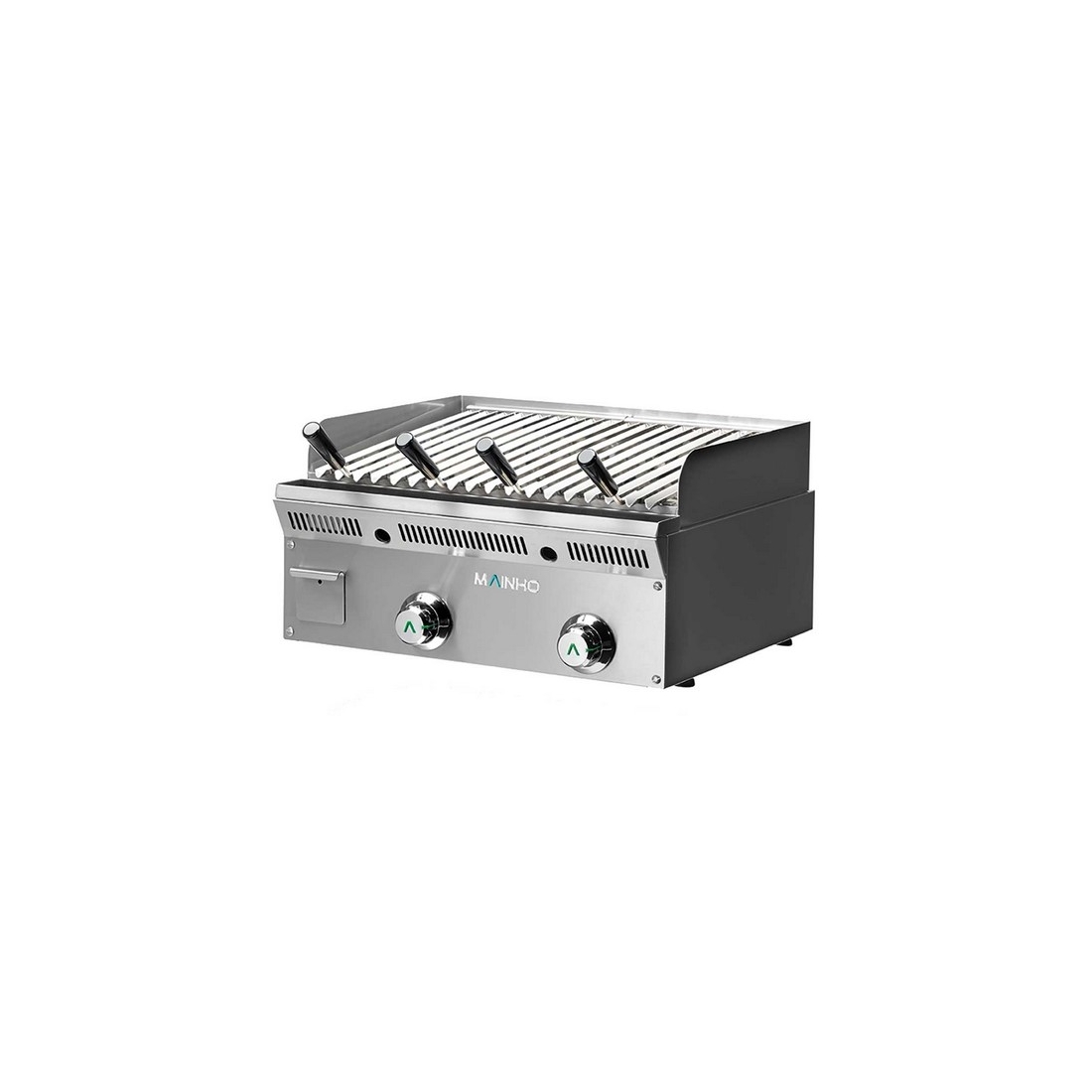 Nuestra Barbacoa Mainho de piedra volcánica, que ofrece calefacción potente y precisa. Zonas de trabajo independientes para creaciones múltiples. Tranquilidad con válvulas de seguridad y termopar. Bandeja recoge grasas y cajón.