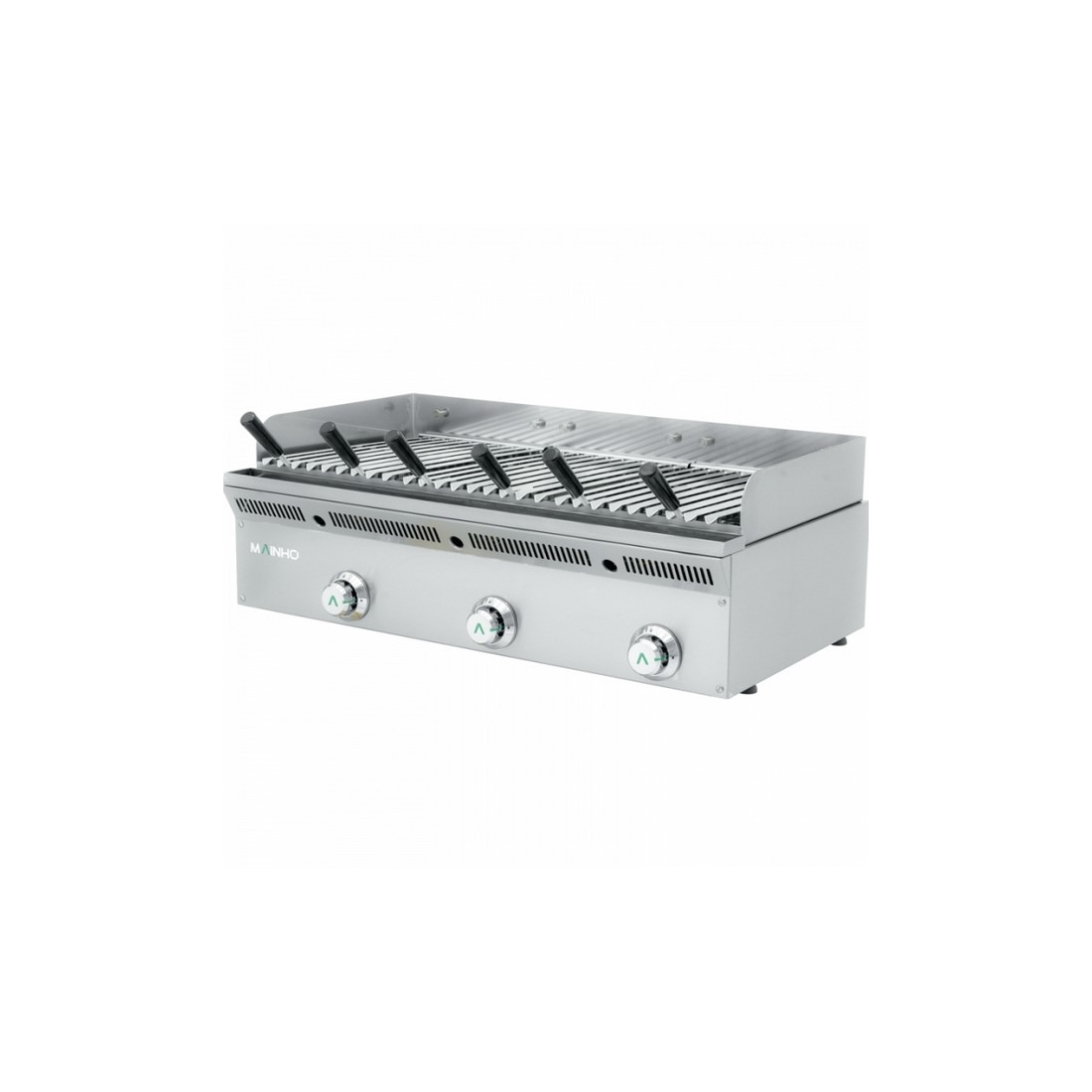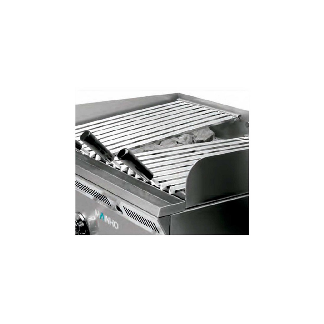 Barbacoa de piedras volcánicas a gas de 70cm. Con una superficie útil de 610 x 396mm esta parrilla profesional está equipada con quemadores tubulares de gran poder calorífico "sin zonas Frías". Cuenta con parrilla acanalada de acero inoxidable regulable en 2 alturas. Fabricada en España con materiales de alta calidad. 3 Kg de Piedras volcánicas incluidas.