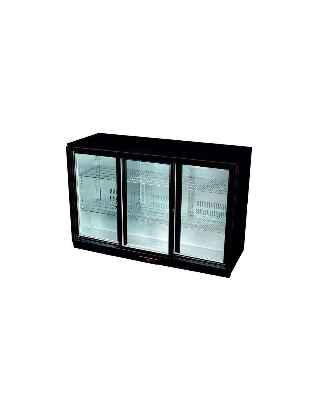 Botellero de 3 puertas con tiradores integrados. Ofrece comodidades con uniones curvas para una fácil limpieza. Tiene una unidad condensadora hermética, con evaporador estático de cobre y aletas de aluminio. Opera en un rango de +2ºC a +6ºC. Medidas 1525 x 550 x 850 mm. Potencia: 282 W. Exterior en acero inoxidable.