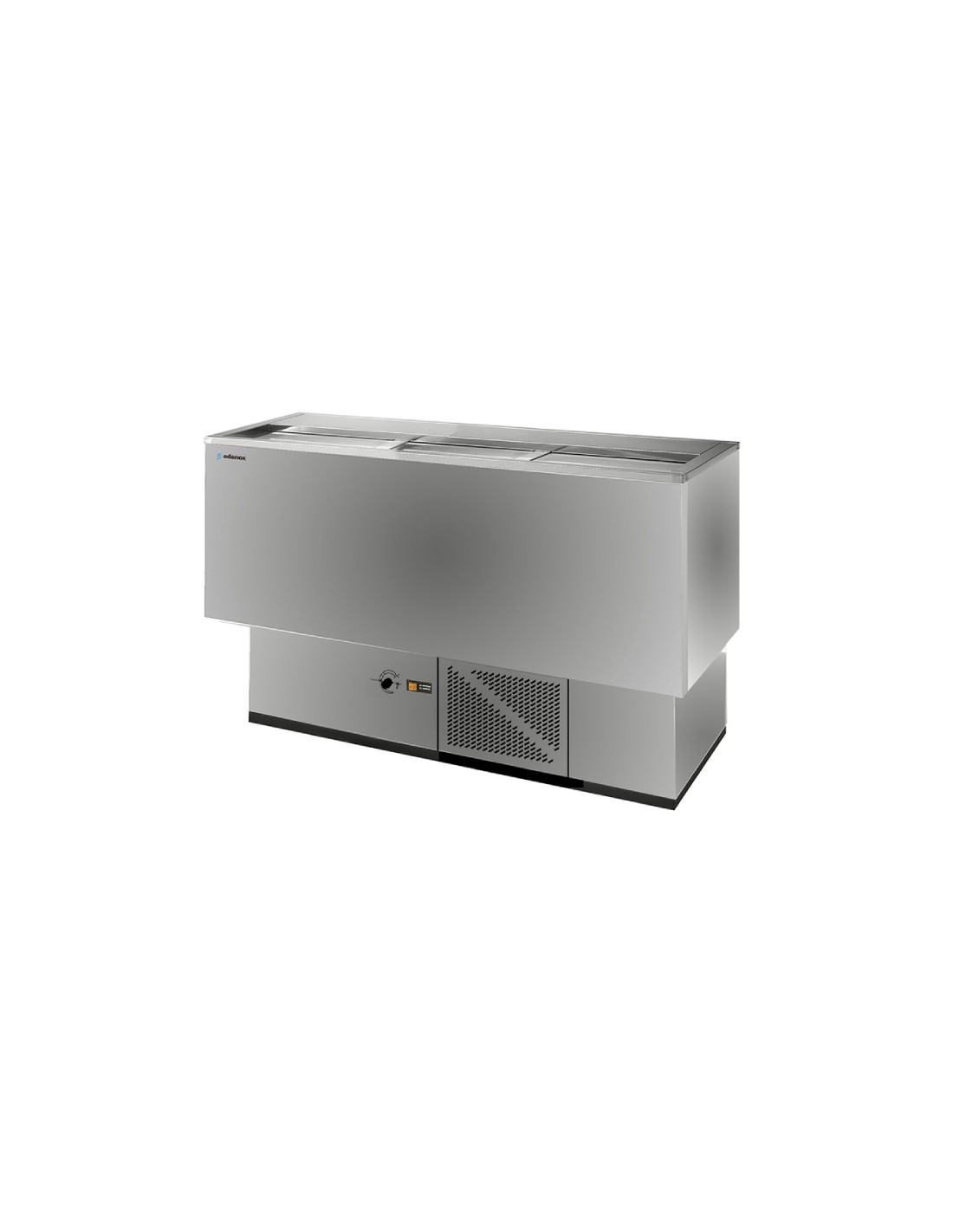 Botellero Frigorífico con puertas correderas y tiradores integrados. Ofrece comodidades con uniones curvas para una fácil limpieza. Tiene una unidad condensadora hermética, con evaporador estático de cobre y aletas de aluminio. Opera en un rango de +2°C a +6ºC. Medidas 1525 x 550 x 850 mm.