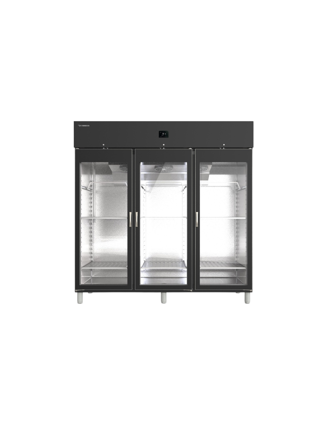 Nevera de maduración "DRY AGING". Tiene una capacidad de 400 litros. Cuenta con un sistema de refrigeración ventilado y un control de temperatura - humedad electrónico. Además, está equipado con 2 estantes ajustables, puertas con cierre automático y una iluminación interior LED.