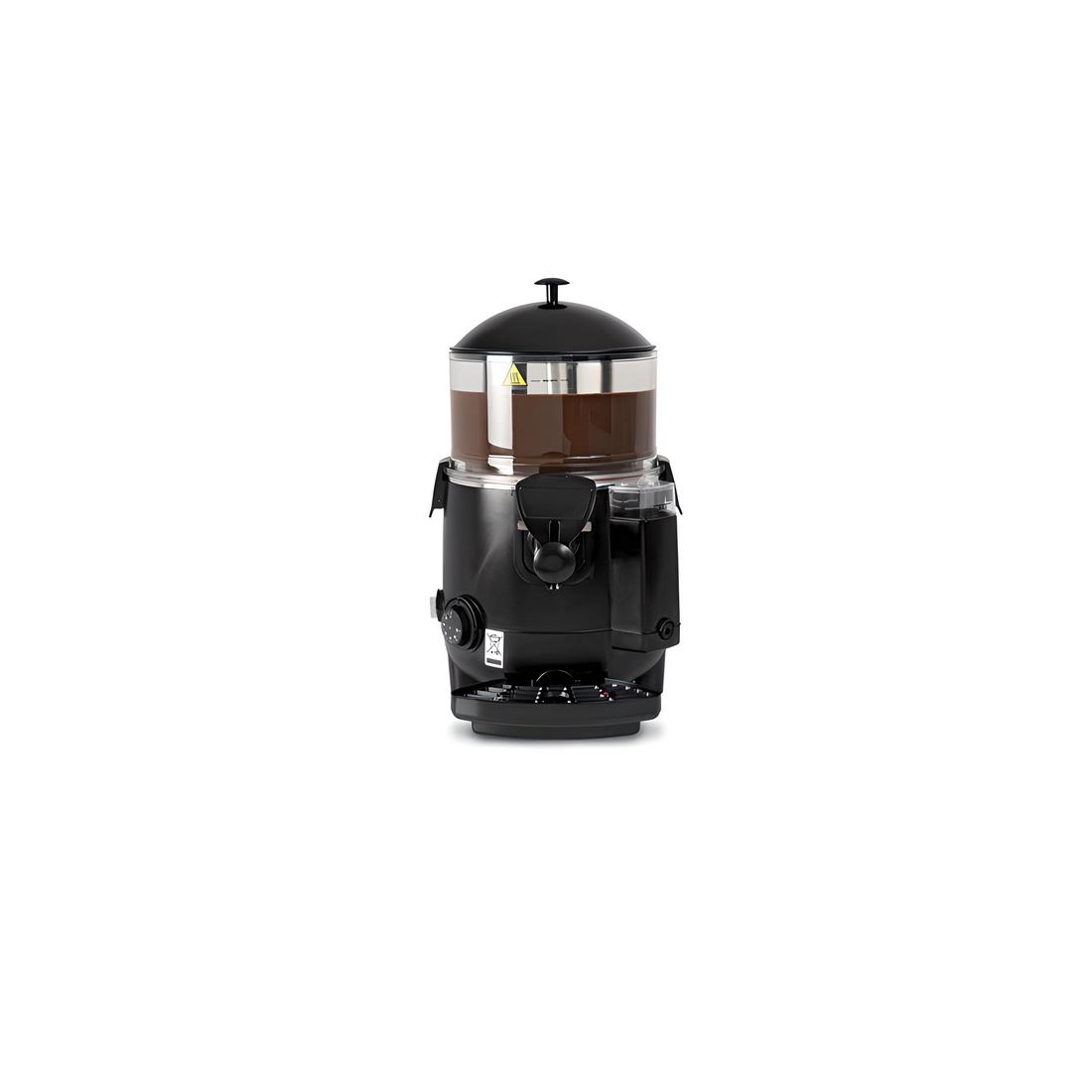 Chocolatera industrial con capacidad de 5 litros, ideal para preparar chocolate y otras bebidas. Cuenta con función de calentamiento al baño maría, mezcla continua y medidas de seguridad con protección de sobrecalentamiento. Dimensiones 300 x 430 x 465 mm.