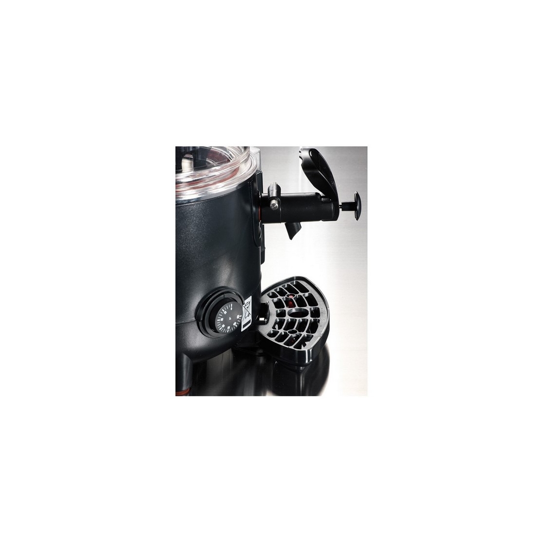 Chocolatera compacta con capacidad de 5 litros, alimentación eléctrica a 230V y potencia de 1000 vatios. El diámetro es de 260 Ø, altura de 470 mm y peso de 8 kg. Ideal para diversas aplicaciones.