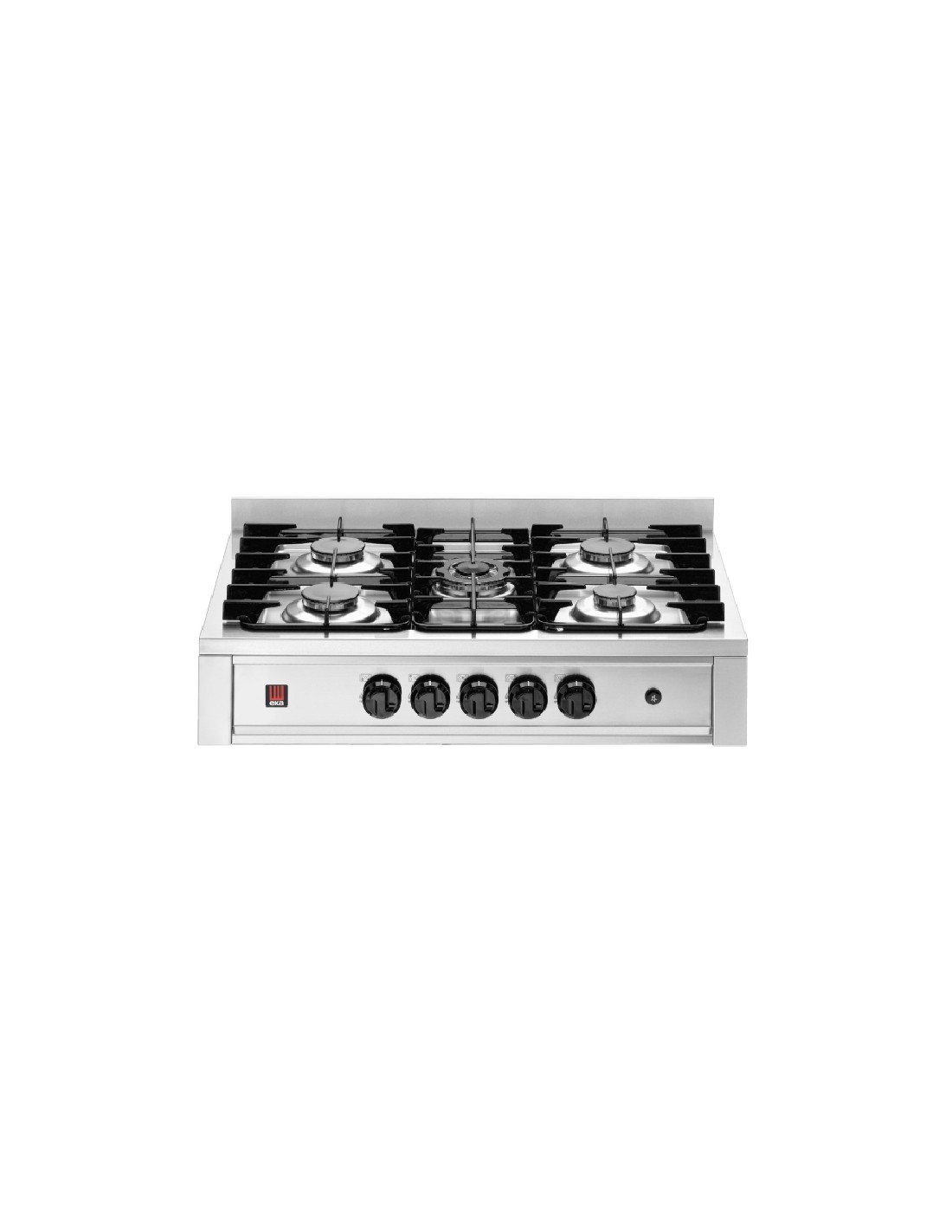 Cocina Industrial 5 Fuegos de Sobremesa EKA, diseñada para cocinas profesionales que requieren potencia y rendimiento en un formato compacto. Su estructura en acero inoxidable y sus 5 quemadores a gas ofrecen una cocción rápida, segura y uniforme.
