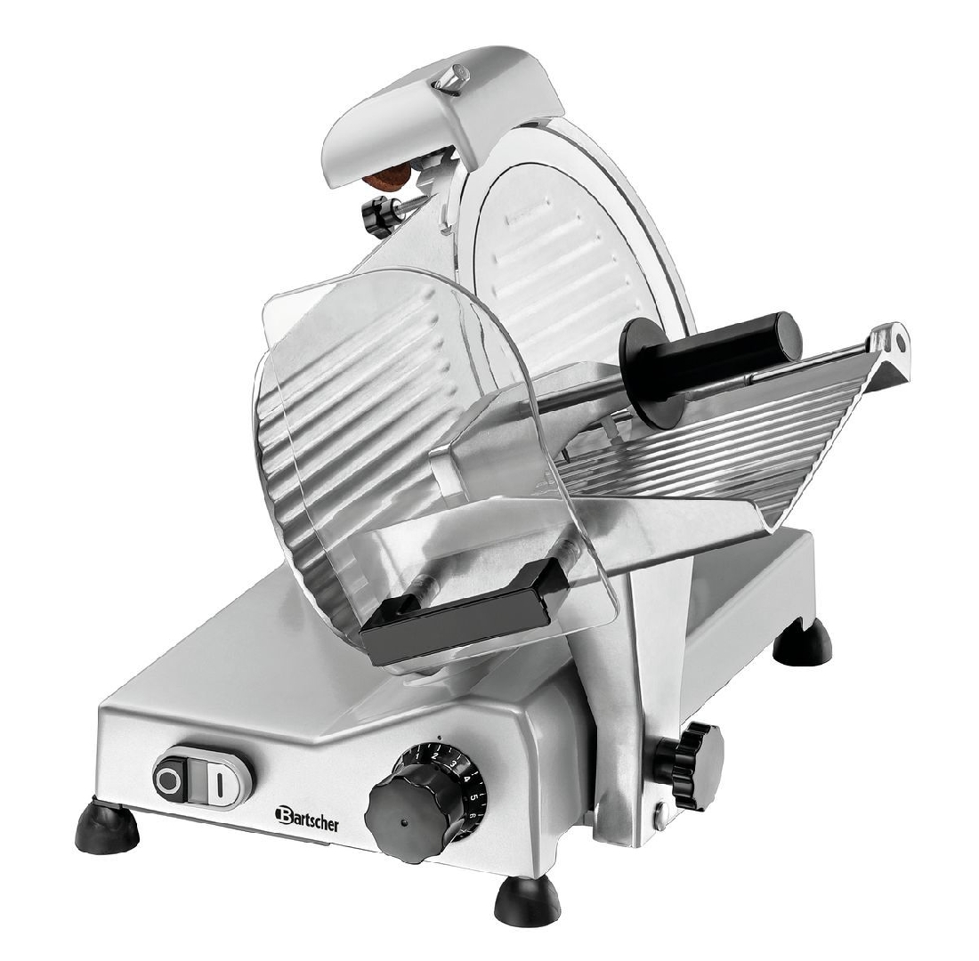Cortadora de Embutidos Profesional 174251 Bartscher, con cuchilla de 25cm de diámetro, afilador incluido y velocidad de hasta 190Rpm.