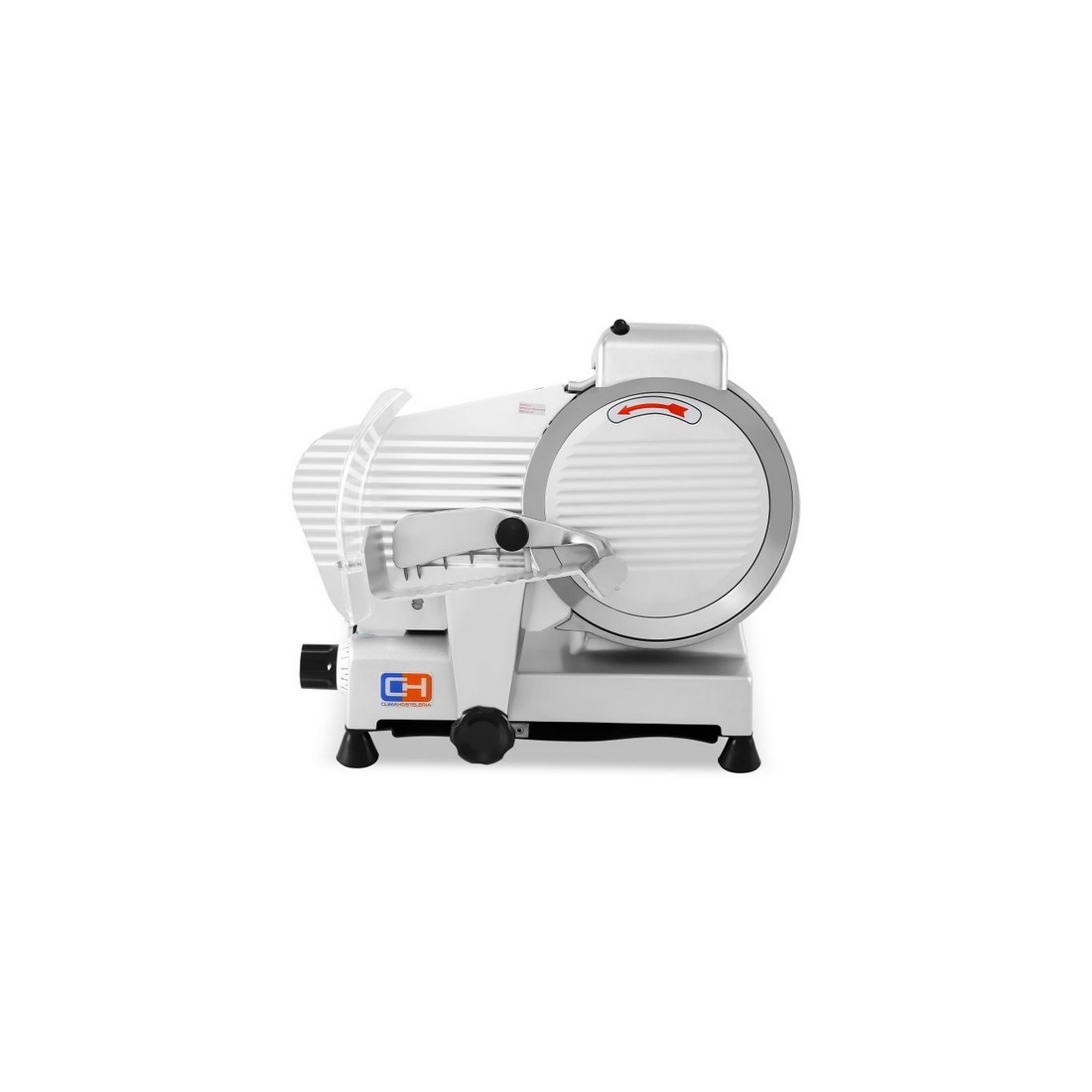 Cortadora de fiambre con cuchilla de 250mm de diámetro. Cuenta con afilador de serie. Motor con protección térmica anti sobrecalentamiento y relé con rearme. Medidas 470 x 420 x 390 mm.