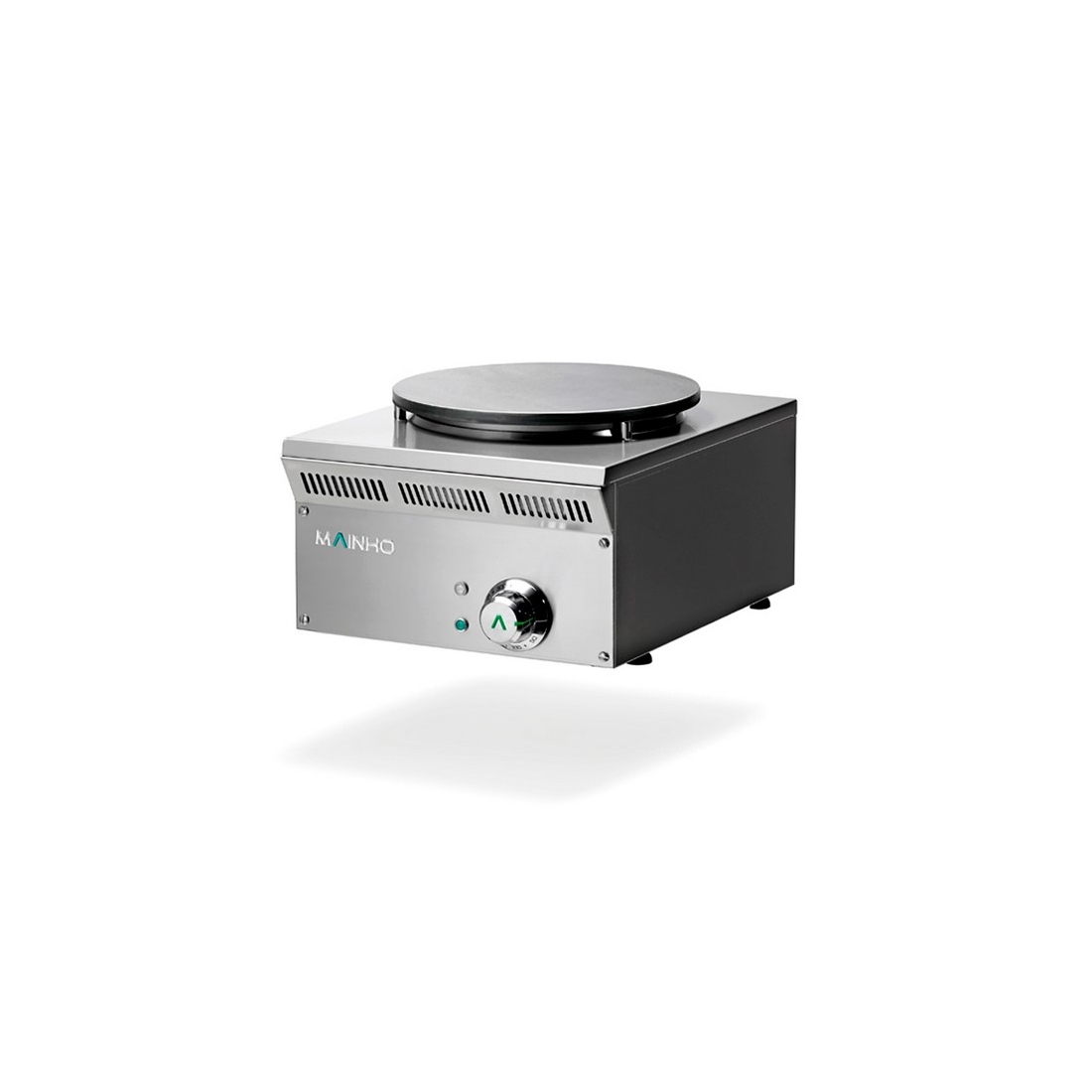 Maquina de crepes profesional simple con placa de calentamiento de 40cm de diámetro. Potencia: 3 Kw. Fabricada en acero inoxidable.