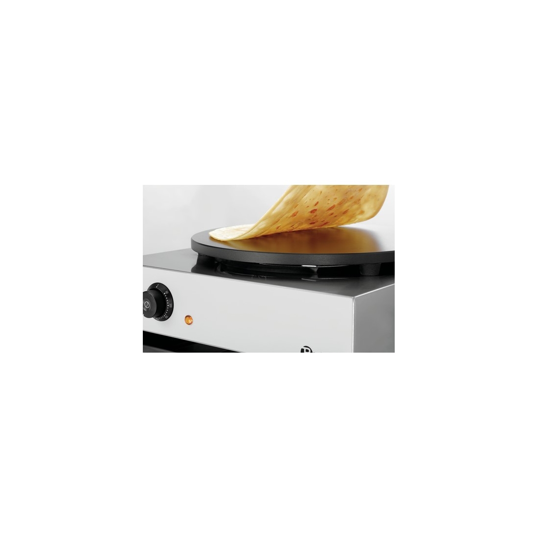 Maquina de crepes profesional simple con placa de calentamiento de 40cm de diámetro. Potencia: 3 Kw. Fabricada en acero inoxidable.