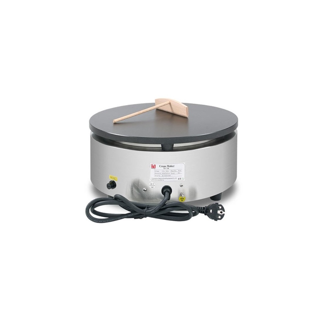 Crepera Eléctrica Profesional EC1N de Eutron, con una placa de 40cm de diámetro, ideal para preparar deliciosos crepes con facilidad. Este es un modelo sin bordes, el cuerpo es del mismo tamaño exacto que el plato de preparación.