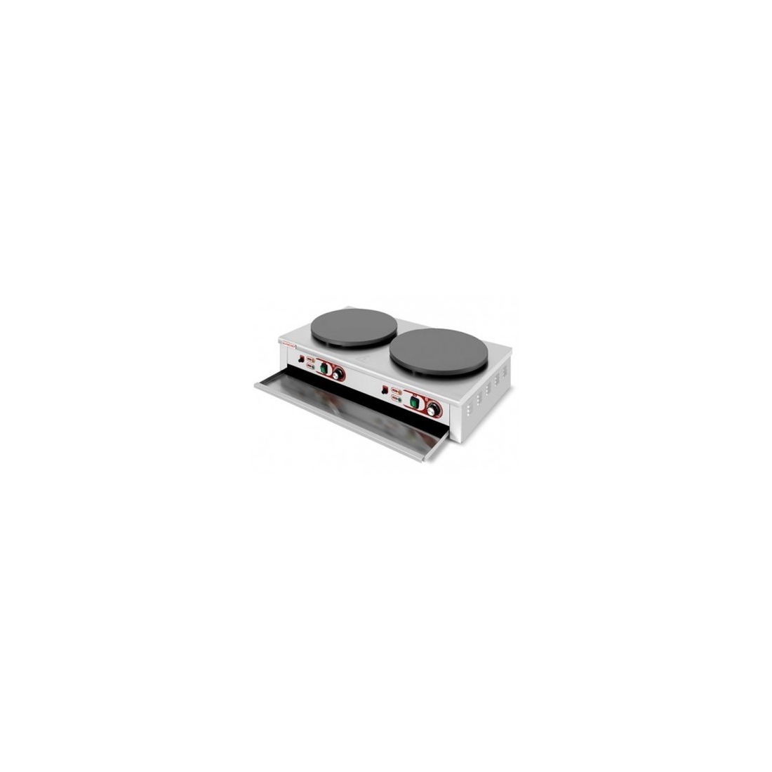 Crepera profesional con dimensiones externas compactas de 860 x 490 x 225 mm. Con una potencia de 6000 W, garantiza un rendimiento rápido y eficaz. Doble plato de 400mm de diámetro cada uno. Esta crepera eléctrica es la elección ideal para aquellos que buscan un equipo potente y compacto para la elaboración de crepes en entornos profesionales.
