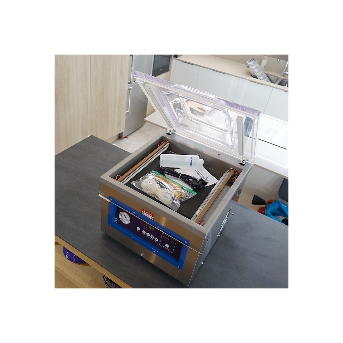 - Envasadora al vacío controlada por tiempo con dos barras de soldadura de 500 + 500mm.