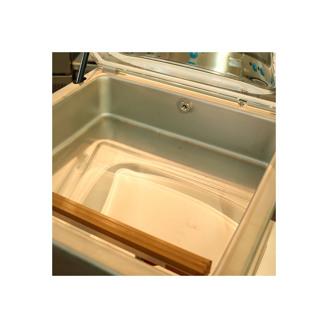 - Barra de sellado de 310 mm y cámara de acero embutida con cantos redondeados.