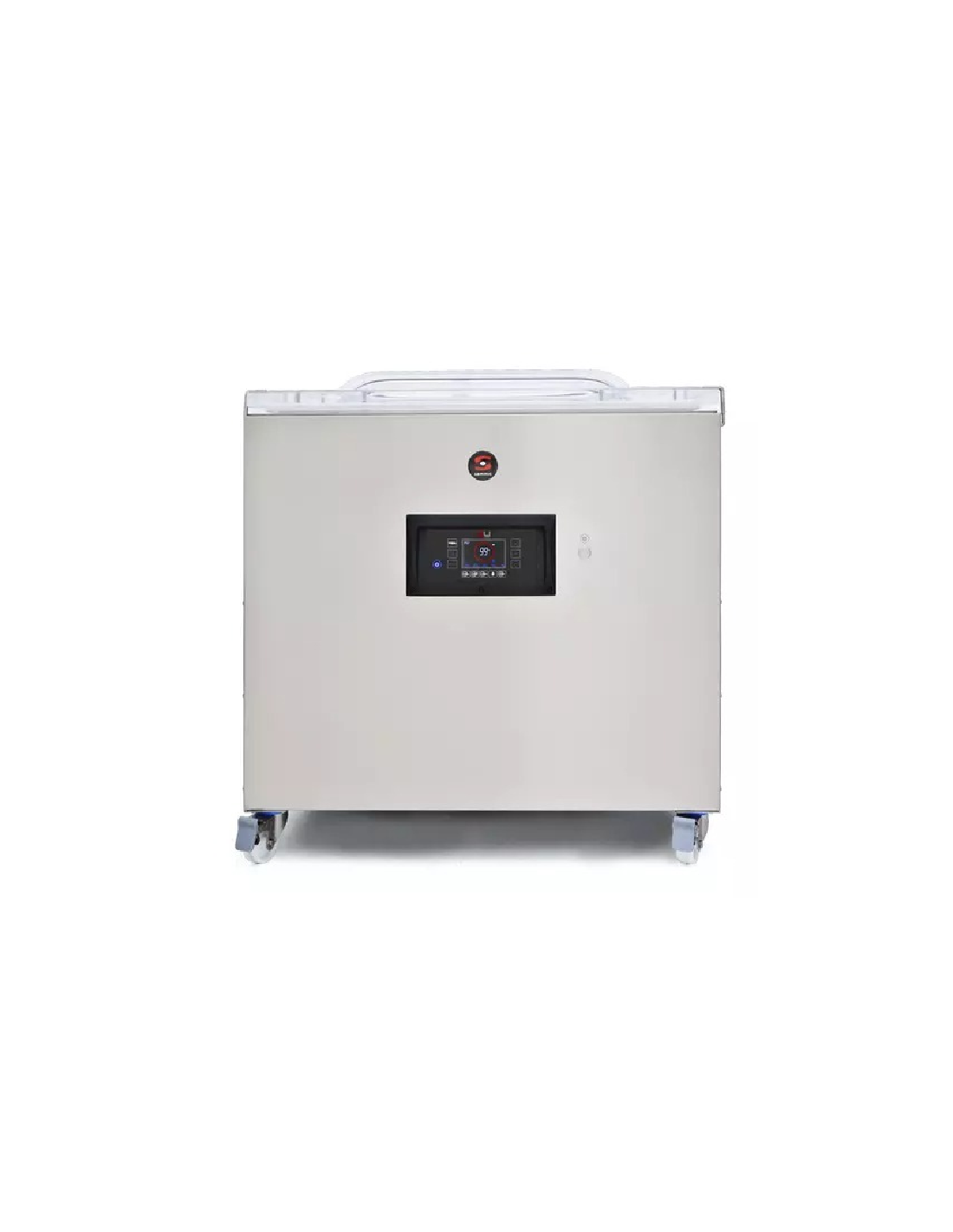 Envasadora al vacío de pie con doble barra de 581+581 mm, bomba Busch 63 m³/h y control por sensor. Cámara de 864 × 603 × 215 mm. Potencia: 1500 W. Alimentación trifásica 400 V.