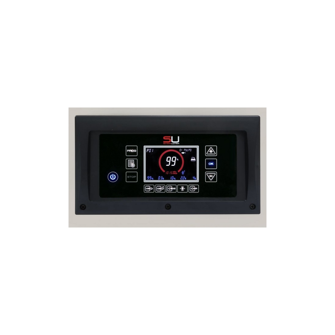- Panel digital con pantalla que indica el porcentaje exacto de vacío.