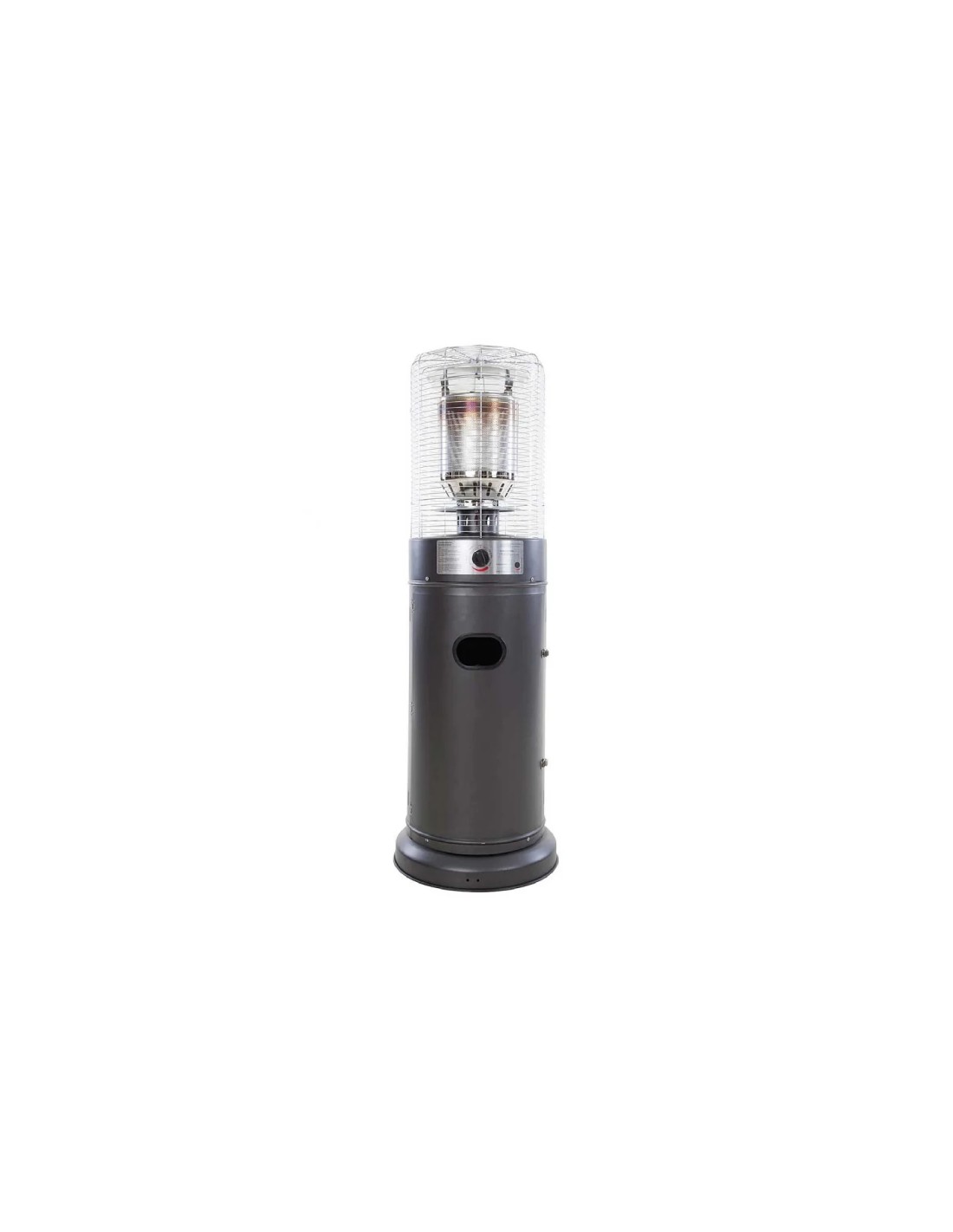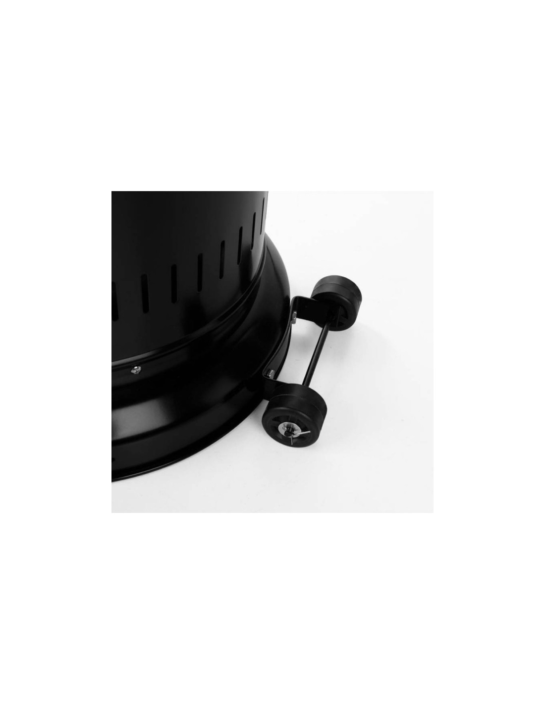 Estufa exterior de 135 cm con potencia de 10 kW y consumo 0,8–0,45 kg/h. Calienta hasta 20 m², incorpora encendido piezoeléctrico, regulación de potencia, ruedas y sistema antivuelco. Medidas: 133 cm de altura.