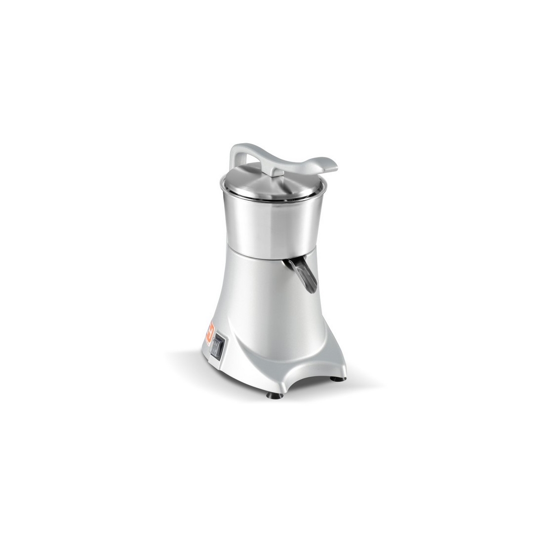 Exprimidor industrial diseñado para la máxima eficiencia en establecimientos de zumos y bebidas. Cuenta con botón de encendido y activación automática mediante palanca, puede funcionar hasta 30 minutos continuos de manera silenciosa. Velocidad de 980 rpm, potencia 230W. Modelo de acero inoxidable.