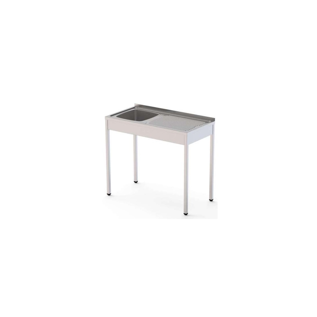 Fregadero industrial 100cm fondo 50 de Clima Hostelería, cuenta con escurridor, peto posterior trasero y tubos de las patas cuadrados, construido en acero inoxidable de alta calidad AISI-304. También realizamos modelos a medida, consúltanos.