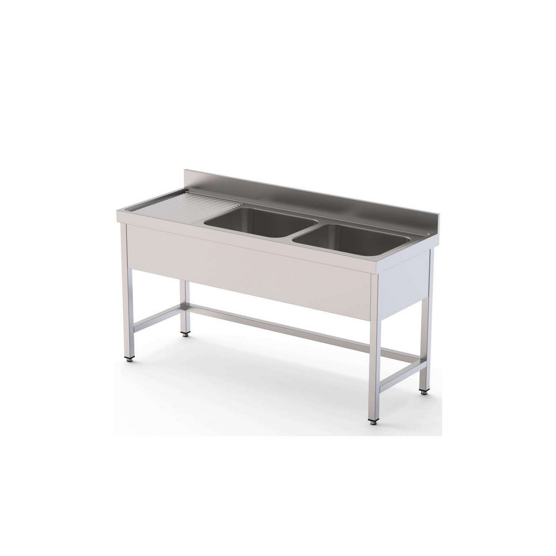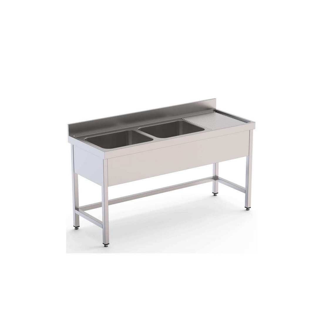 Fregadero industrial 160cm fondo 70 de Clima Hostelería, cuenta con escurridor, peto posterior trasero y tubos de las patas cuadrados, construido en acero inoxidable de alta calidad AISI-304. También realizamos modelos a medida, consúltanos.