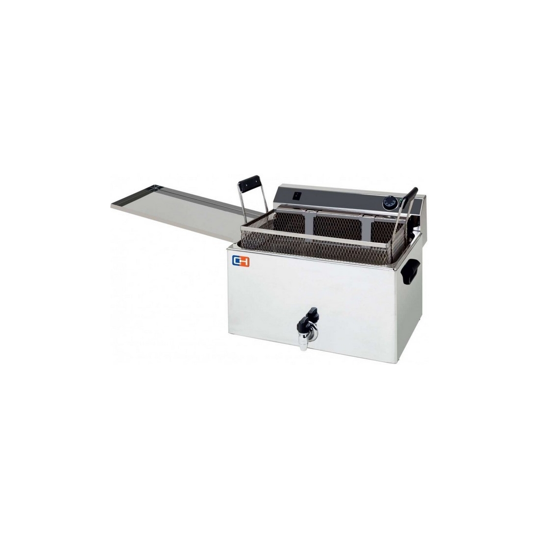 Freidora pastelería 16 litros FP16L de Clima Hostelería, trifásica de gran potencia con contactor de seguridad. Este modelo de freidora es especial para pastelería. Destaca por estar equipada con una gran potencia, a la vez que mantiene un diseño sencillo y eficaz. Para su fácil limpieza y mantenimiento el cabezal es desmontable, incluyendo un grifo de vaciado. Cuenta con un termostato de seguridad regulado a 240ºC.