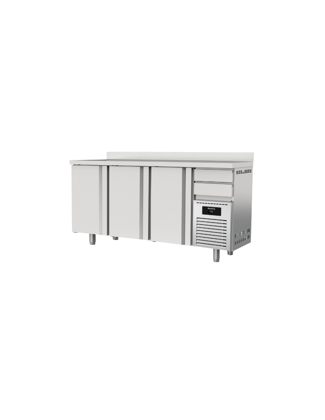 El frente mostrador refrigerado MFR-200 de Docriluc está diseñado para barras de bar, restaurantes y áreas de servicio que requieren mayor capacidad de almacenamiento refrigerado bajo encimera. Su estructura permite utilizar la encimera superior como superficie de trabajo mientras se conservan bebidas y productos refrigerados en el interior.