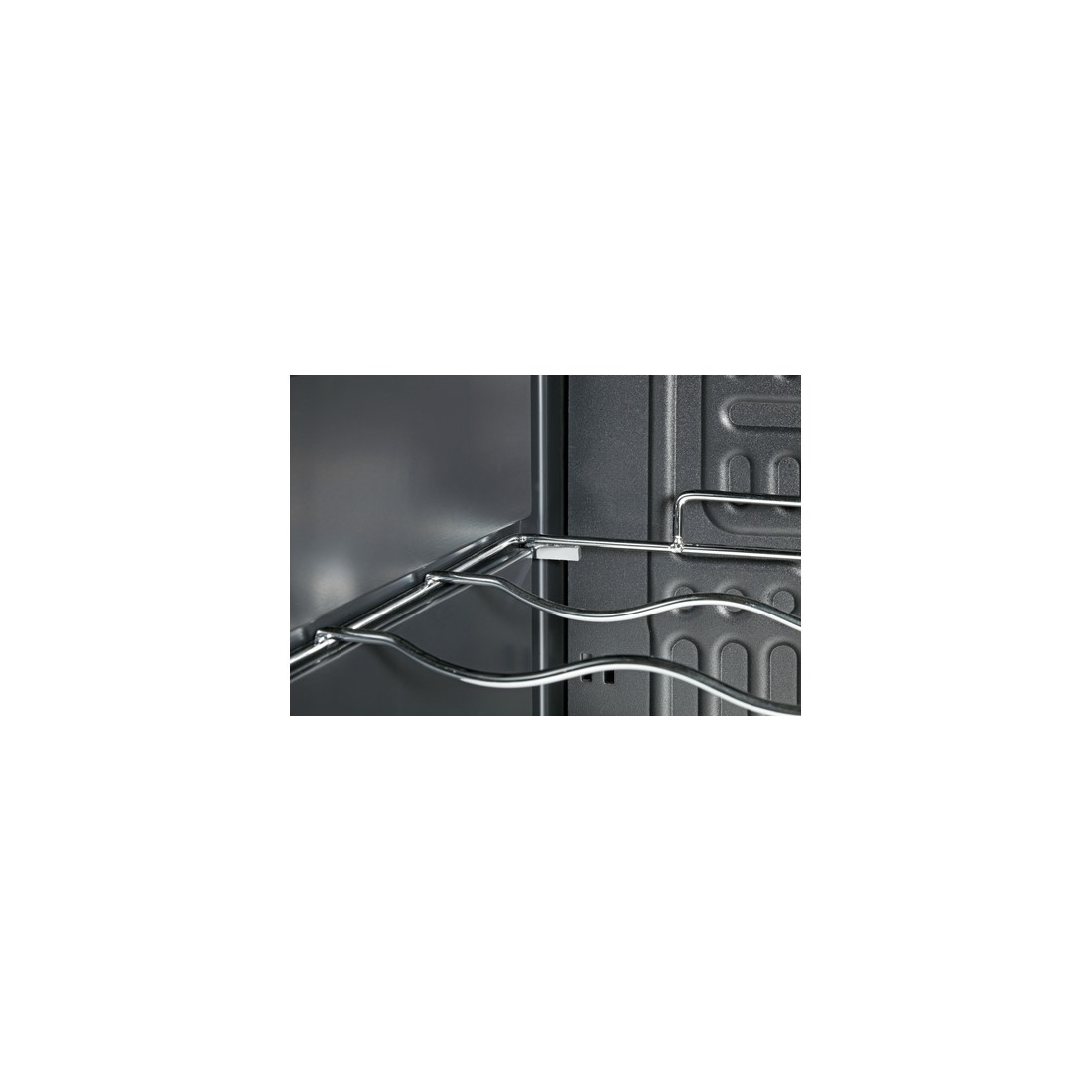 Mini armario expositor refrigerado de 43x46cm, con capacidad de 50 litros. Ideal para sobre mostrador. Cuenta con un estante plastificado regulable en altura, y desagüe interior que facilita la limpieza y evacuación de líquidos. Patas regulables en altura, temperatura ajustable de 2 a 8ºC. Capacidad: 72 latas de 33cl.