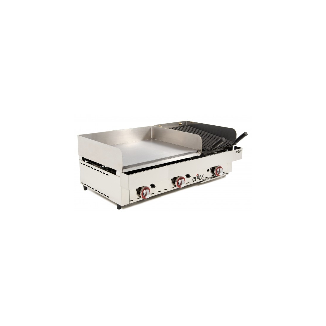 Frytop a gas, de la marca Arilex, fabricada en España con materiales de la más alta calidad, con barbacoa de piedra volcánica incluida. Placa de acero rectificado con 15mm de espesor y 80mm de altura en peto o con baño de cromo duro de 50 micras. Seleccionar tipo de superficie útil. Envío gratuito en 5 días 🚚, Según disponibilidad➛Equipamiento: