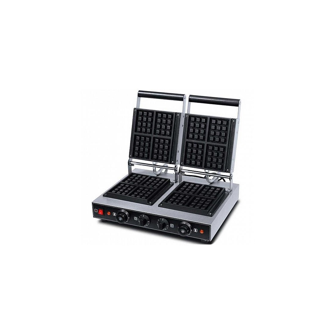 Maquina de gofres con doble placa cuadrada y capacidad de 8 gofres de 200 x 200. Cuenta con una potencia de 1,6 + 1,6 Kw. Su temperatura ajustable de 50 a 300ºC.