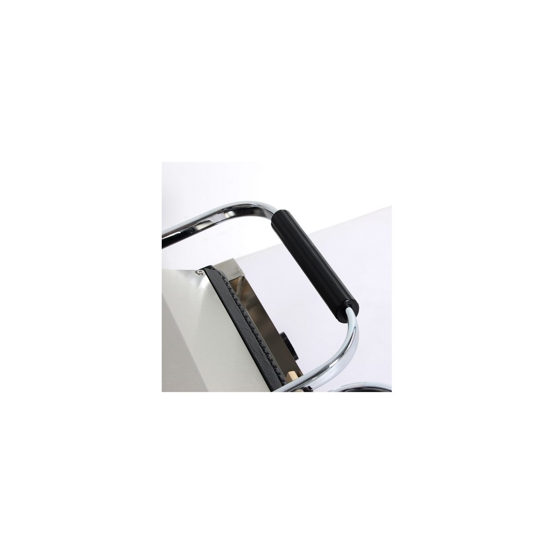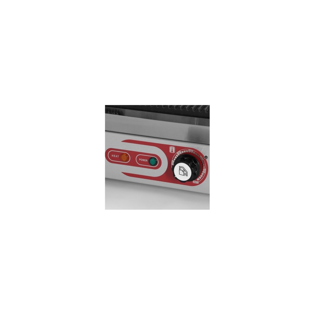 Grill eléctrico grande de doble cuerpo construido en acero inoxidable de alta eficiencia térmica. Las placas son esmaltadas y acanaladas. Tiene un rango de temperatura de 50ºC a 300ºC. Incluye cajón recoge grasas y patas de goma. Medidas: 59 x 36 cm
