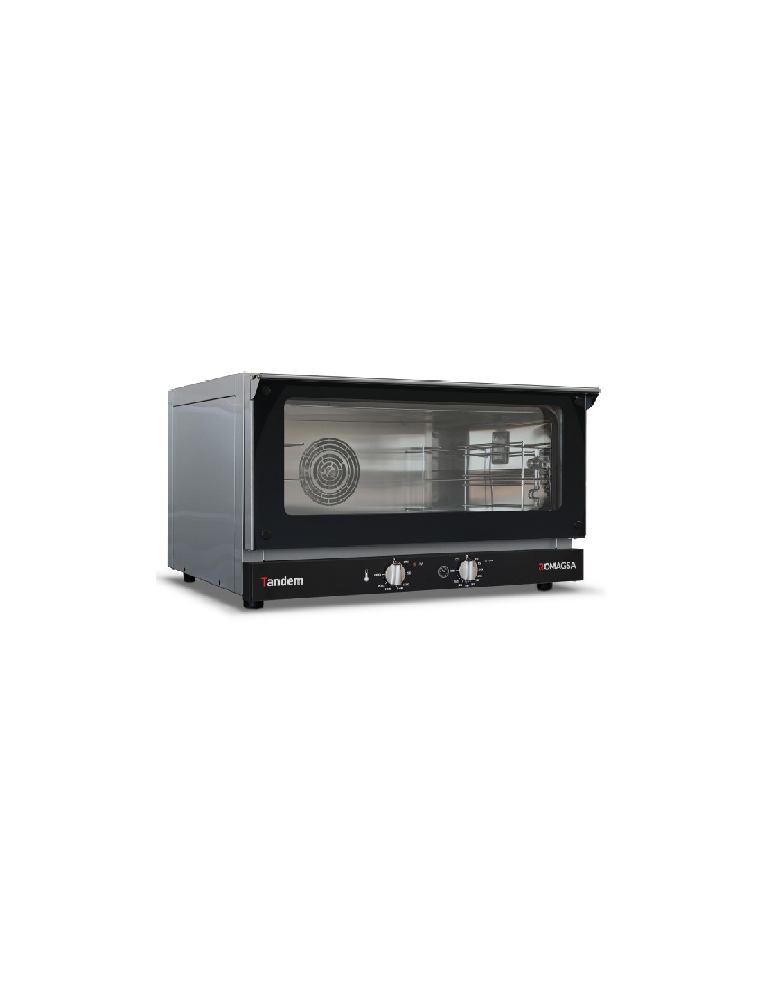 Horno de convección eléctrico Italiano, con capacidad de bandejas: 48 x 34cm. Cuenta con una potencia de: 3,7Kw y conexión monofásica. Control analógico y apertura de puertas batientes. Realiza barras de hasta 53cm