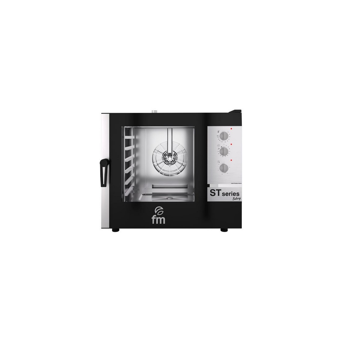 Horno de panadería de la serie ST BAKERY. Equipado con panel de control manual y mucha facilidad de uso. Tiene una potencia de 10.500W y conexión trifásica. Cuenta con una capacidad de 6 bandejas 600x400 - 6 GN 1/1. Posición de bandeja transversal.
