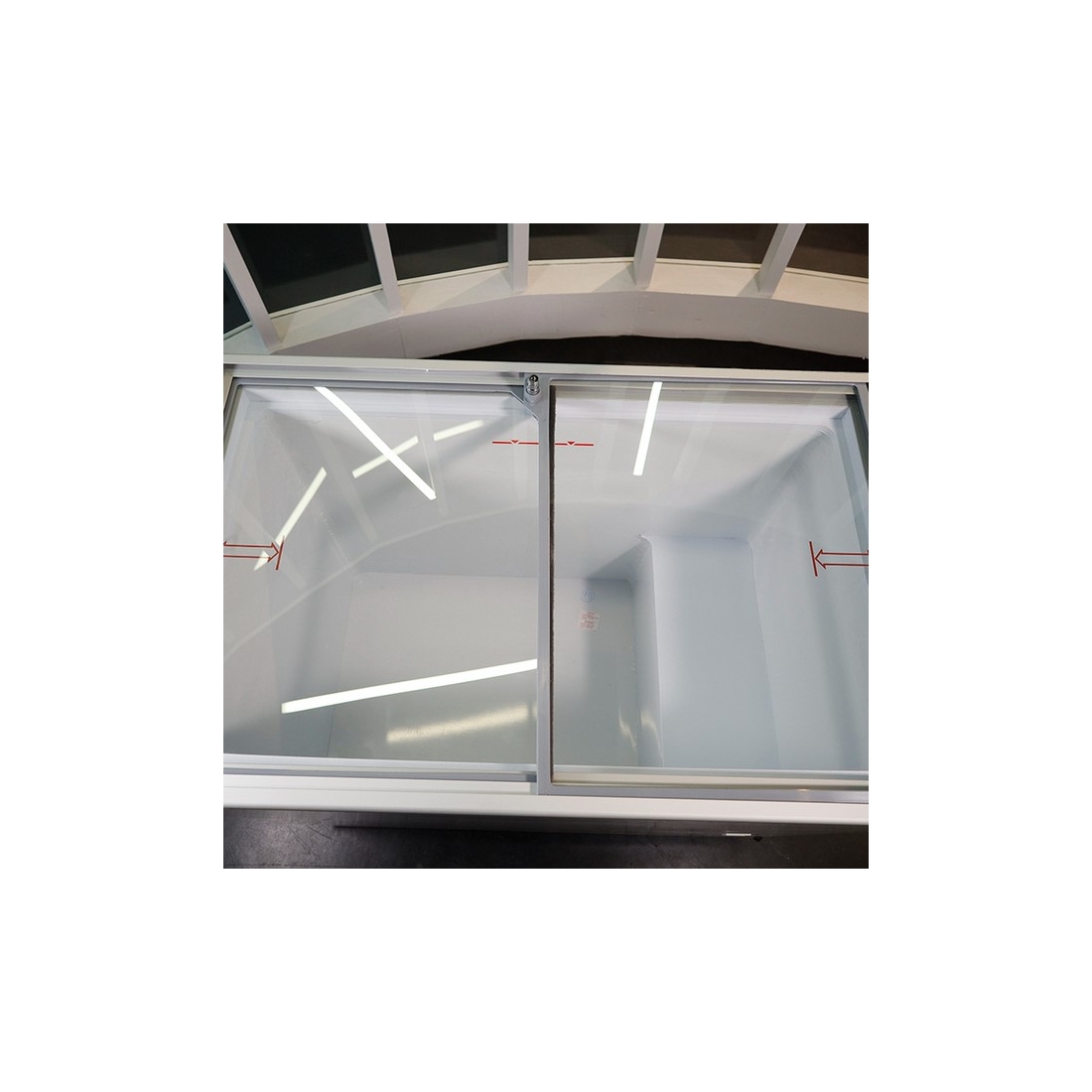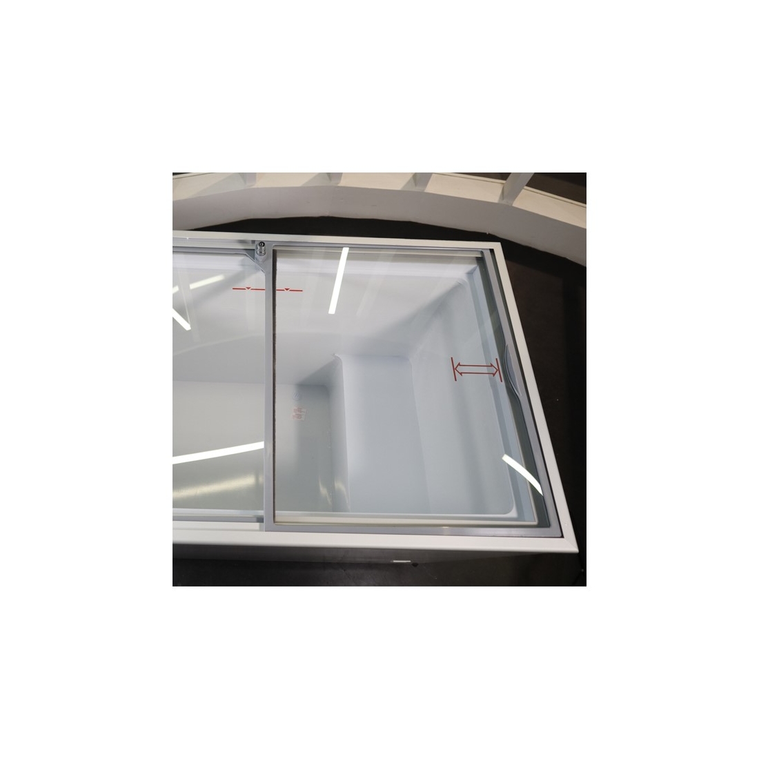 - Este congelador horizontal de puerta de cristal destaca por su eficiencia energética. Gracias a su estructura, se minimizan las pérdidas térmicas hacia el entorno.