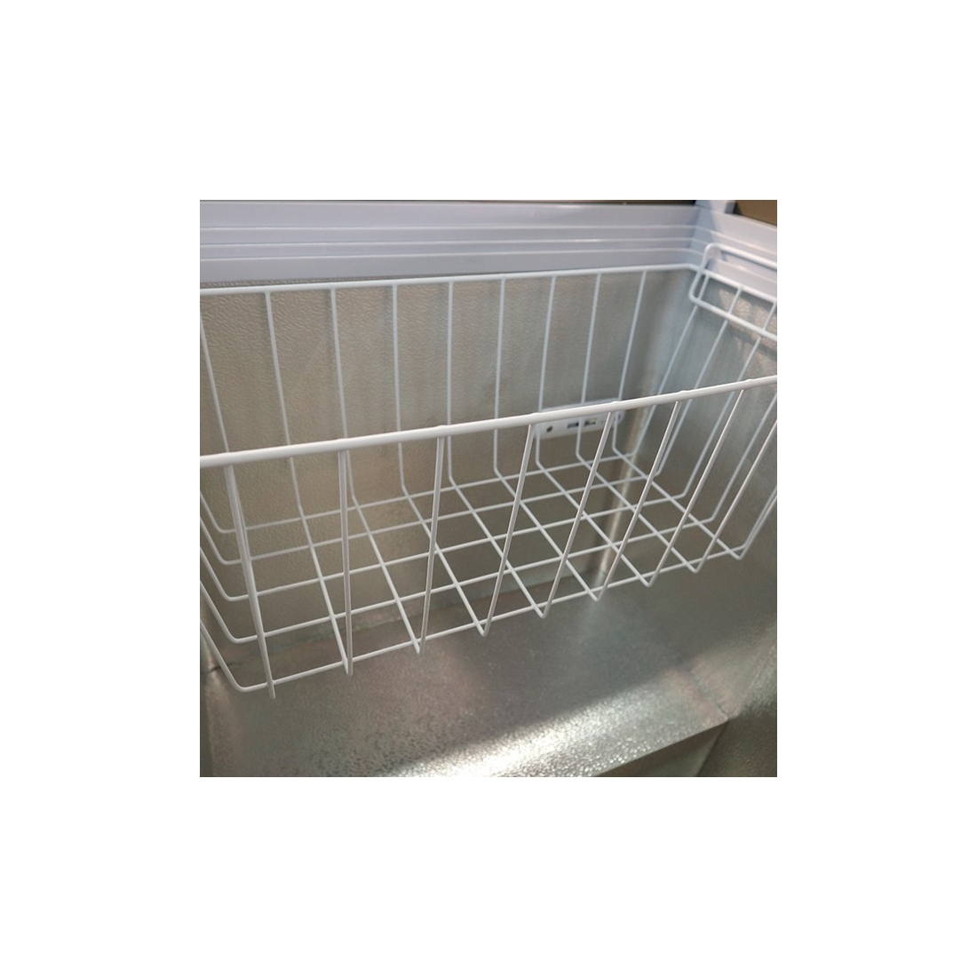 Congelador de isla de 70cm con capacidad de 191 litros. Equipado con cierre de seguridad y control analógico de temperatura. Botón para activar el modo de congelación rápida.