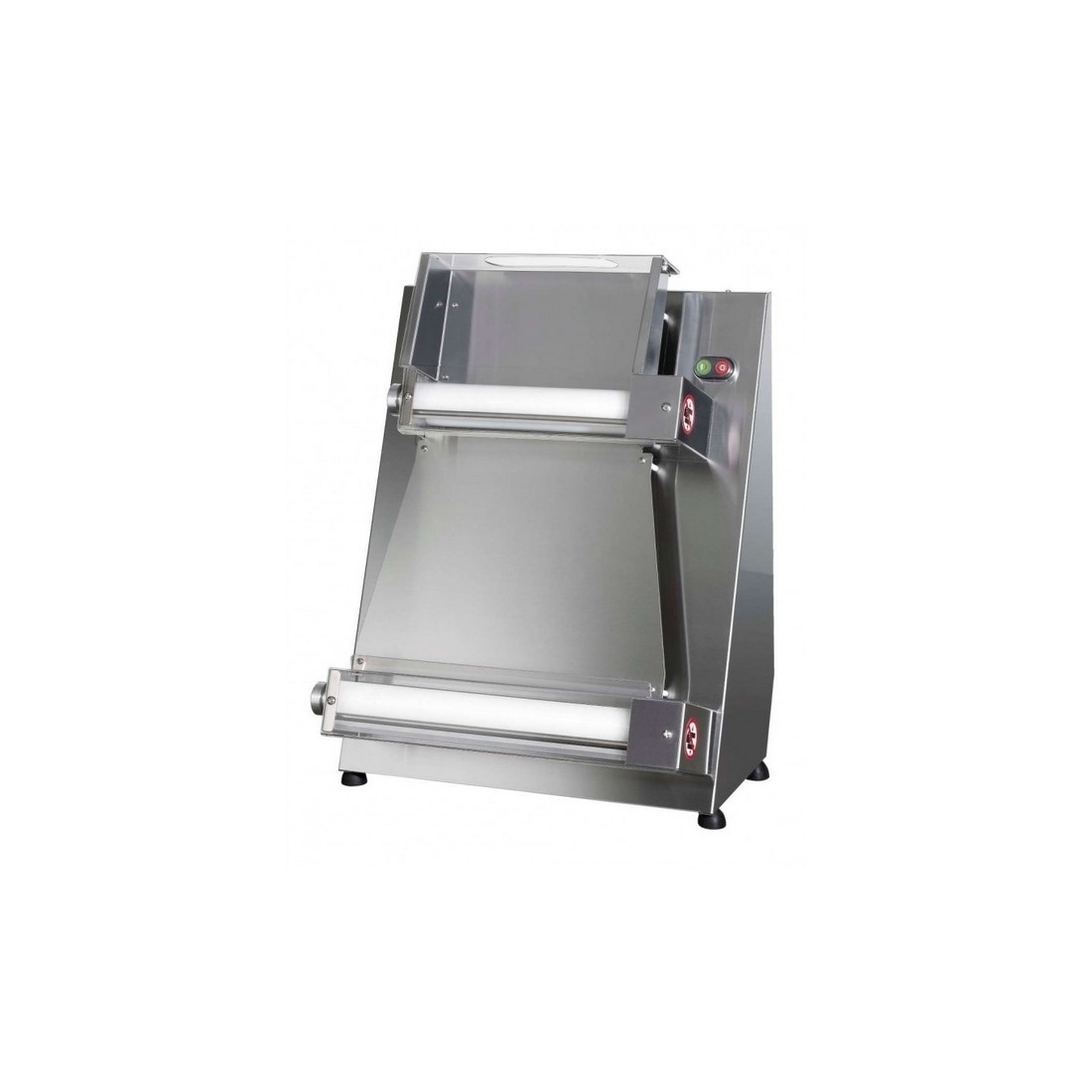 Formadora de masas de pizza para diámetros de 140 a 310mm, con dos rodillos de resina alimentaria. Está fabricada en acero inoxidable, su potencia es: 370W. Modelo de Fabricación Italiana.