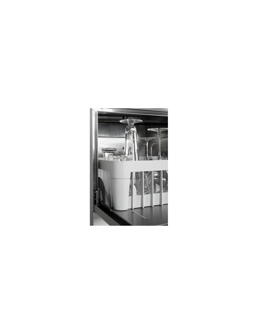 Este lavavasos de uso profesional cuenta con una cesta de dimensiones 40x40. Está provisto de un panel de control electromecánico para una fácil operación. Ofrece dos programas de lavado con duración de 120 a 180 segundos cada uno. Su altura permite lavar vajilla de hasta 30 cm de altura. Voltaje 230v. Equipado de serie con bomba de desagüe, dosificador de abrillantado y detergente.